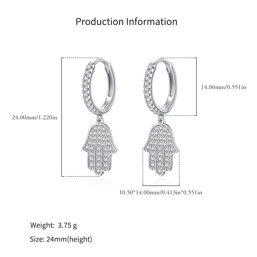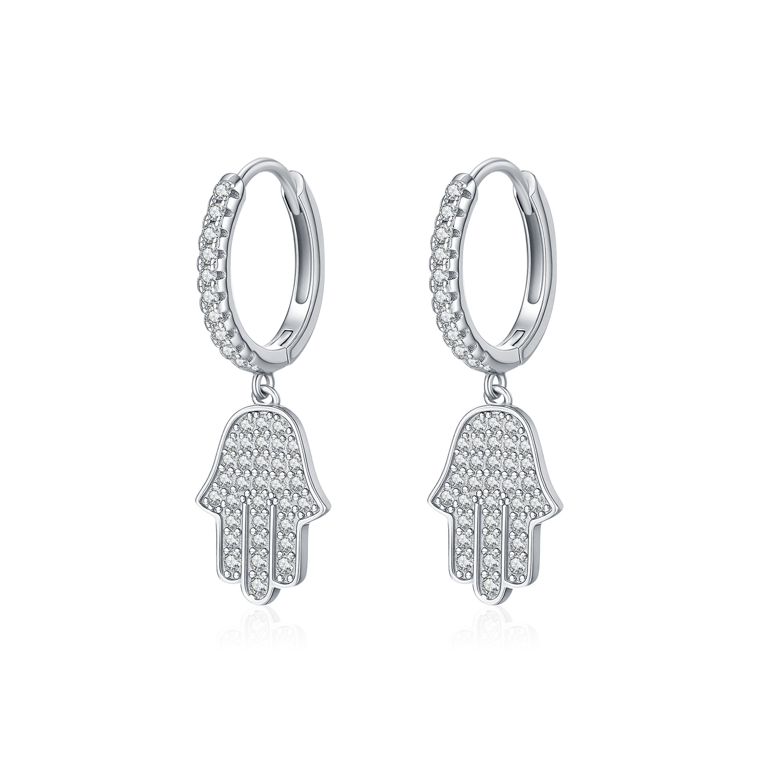 925 Sterling Silver Pave CZ Hamsa Hand Huggie Earrings 60300217