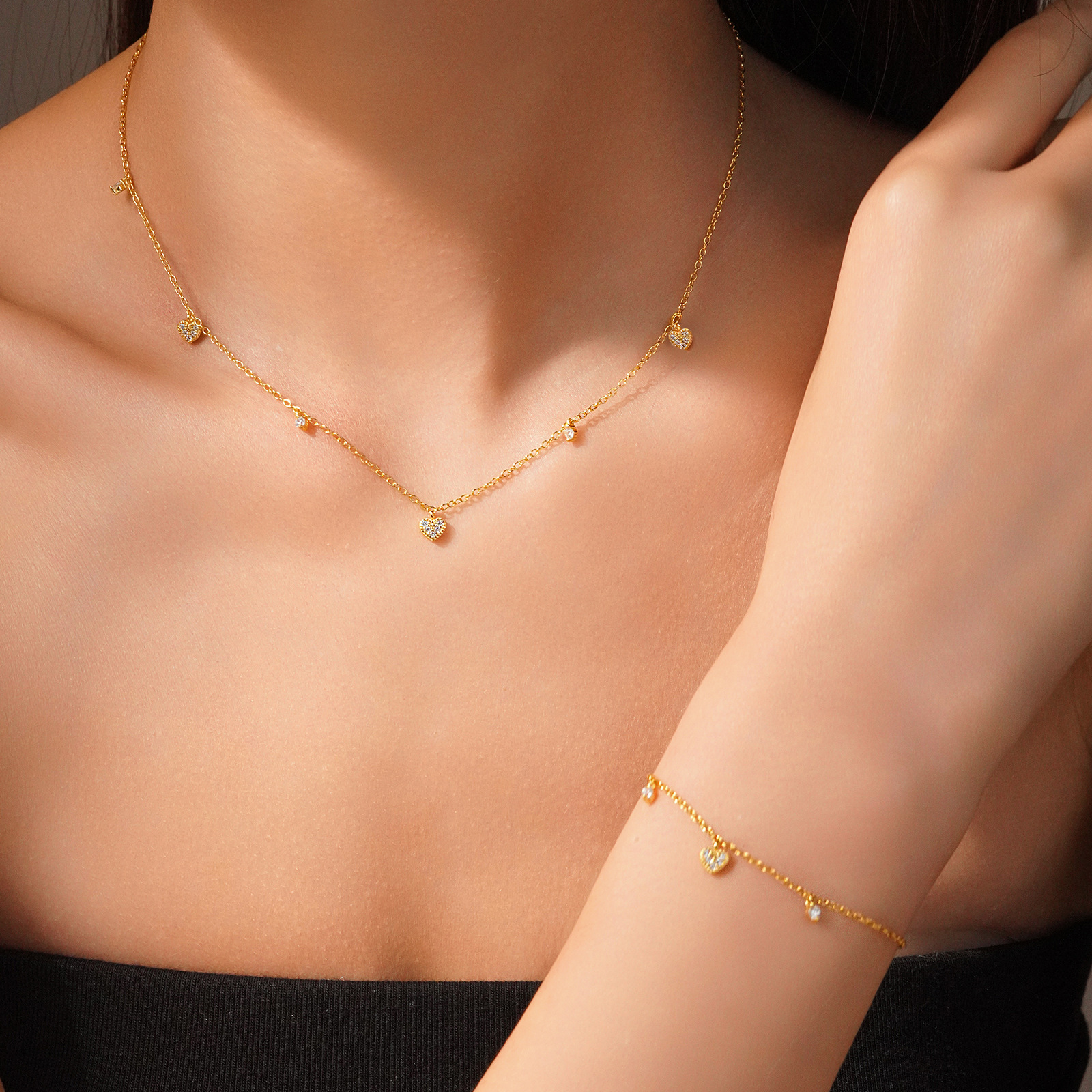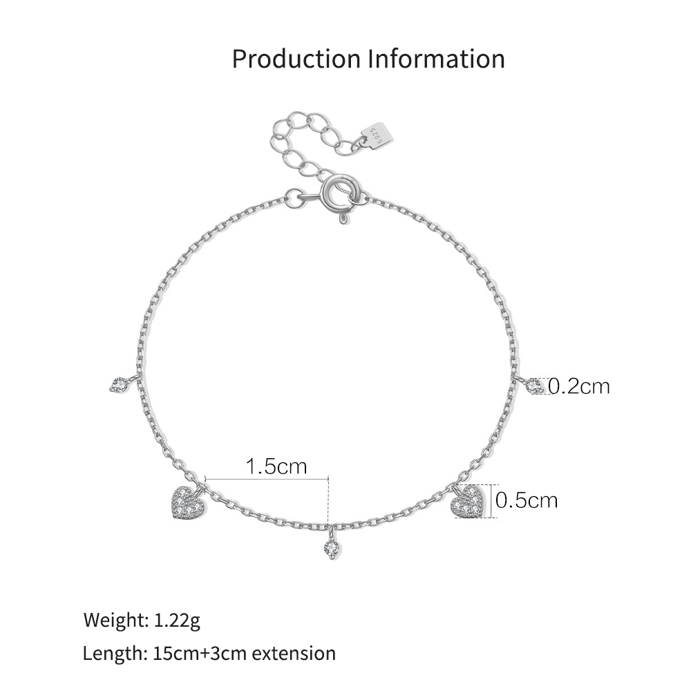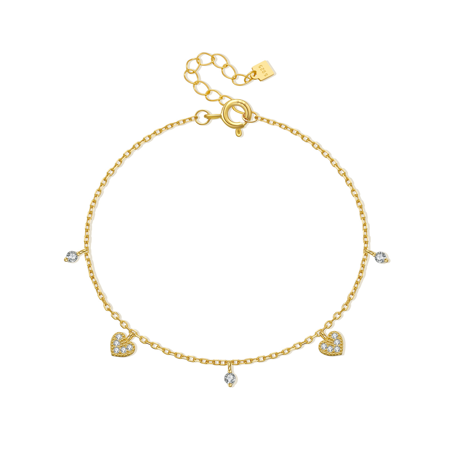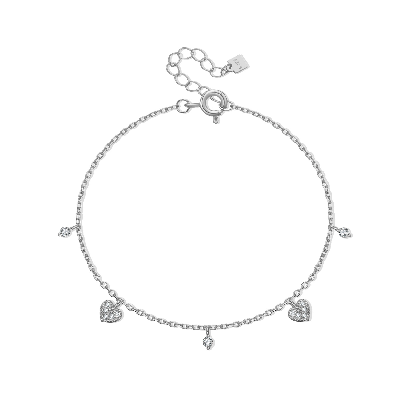 Drive high-volume sales in your fine jewelry and gifting categories with our Wholesale 925 Sterling Silver Pave Heart Charm Bracelet. Charm-style bracelets and romantic motifs are consistently top-performing, evergreen staples in the retail market. This SKU flawlessly executes the trend, featuring a premium dainty chain adorned with alternating pave-set heart charms and solitary crystal drops. The inclusion of a highly practical adjustable extender chain provides significant logistical value by minimizing customer sizing issues. By offering this boutique-quality, hypoallergenic S925 silver aesthetic in both classic silver and radiant gold finishes, you naturally encourage multiple purchases. This high-margin piece is a mandatory anchor for your "Romantic Gifting," "Everyday Essentials," and "Layering Bracelets" assortments.
