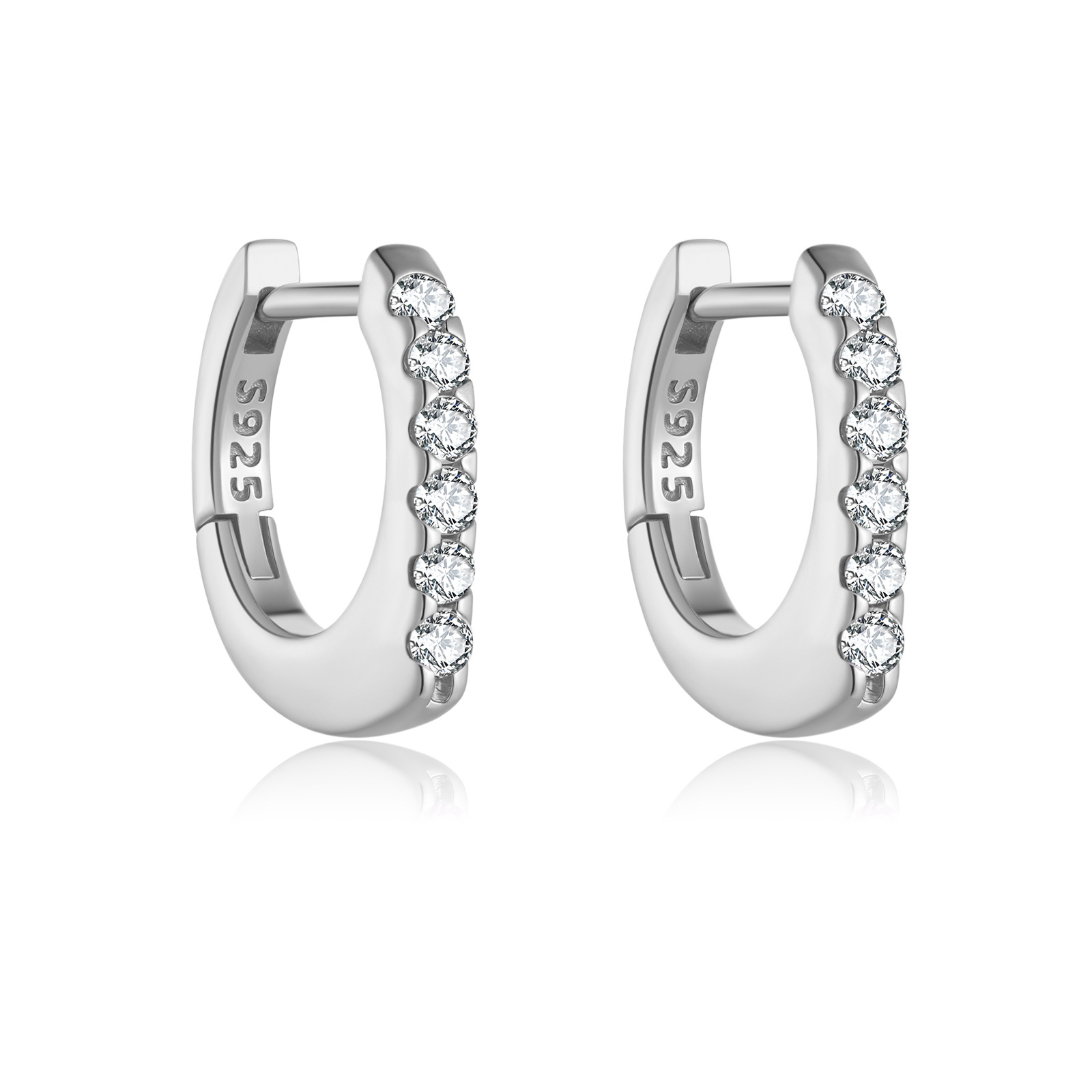 925 Sterling Silver Pave Huggie Hoops 60200361