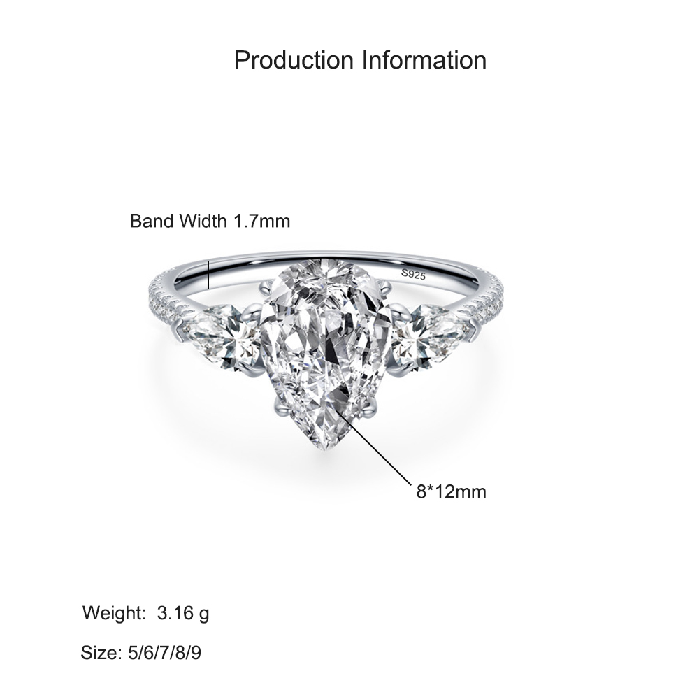 Shine with effortless elegance wearing this 925 sterling silver teardrop zircon ring. The centerpiece features a brilliant pear-cut zircon that sparkles from every angle, complemented by two side stones and a pavé-set band for added glamour. Crafted from genuine sterling silver, this ring is hypoallergenic, durable, and polished to a high shine. Perfect for engagements, anniversaries, or adding a touch of sophistication to your everyday look.