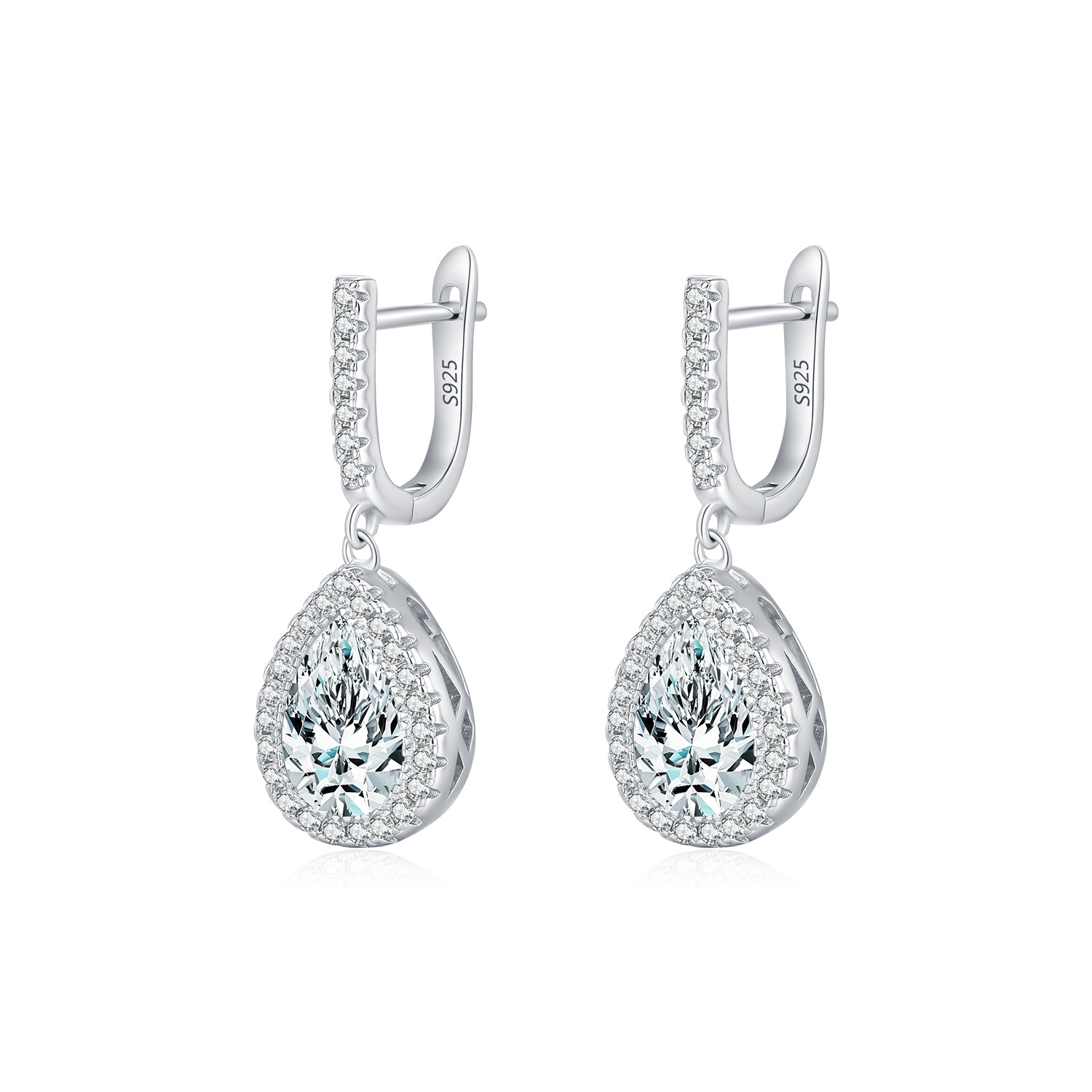 925 Sterling Silver Pear Halo Drop Earrings 60300221