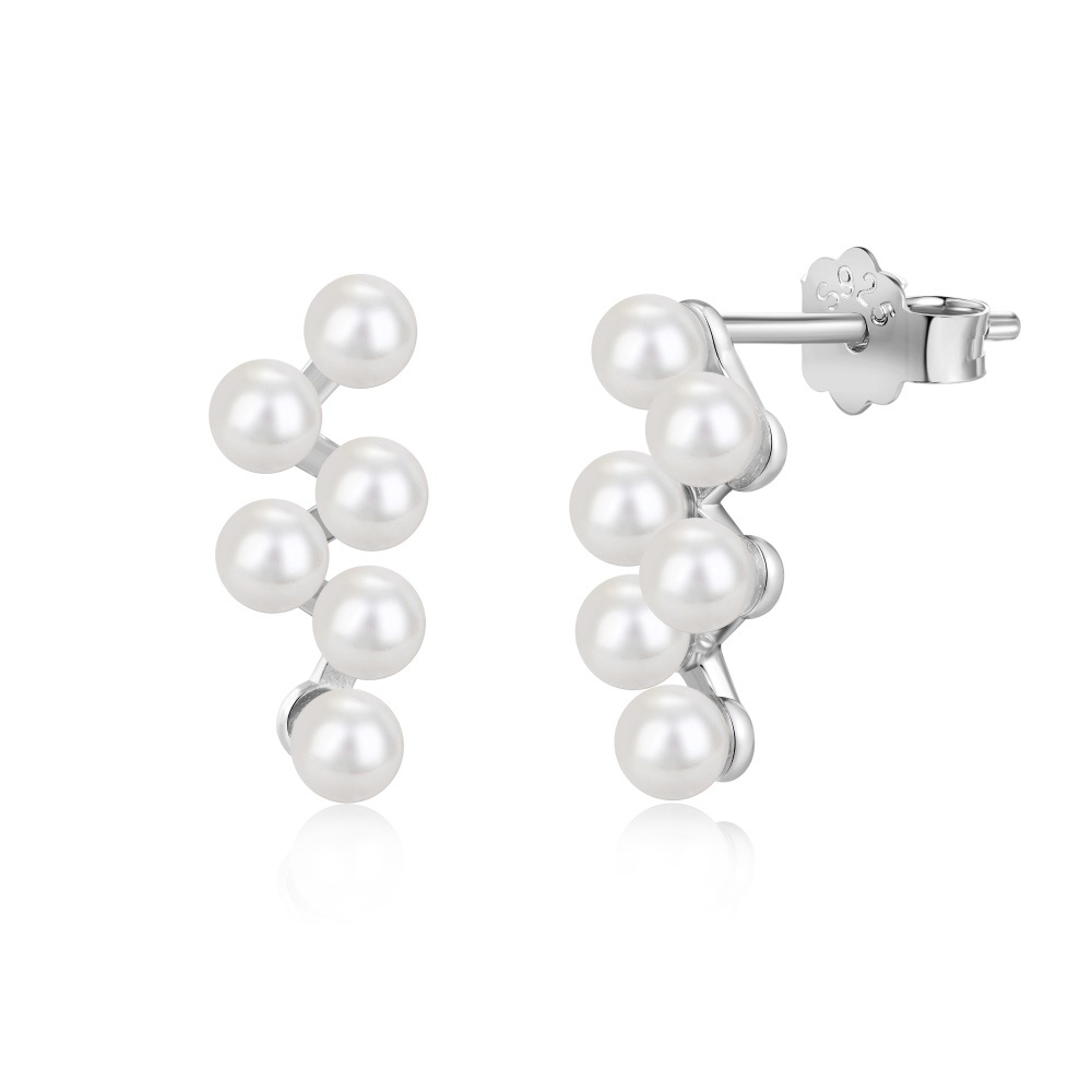 925 Sterling Silver Pearl Cluster Stud Earrings 40500093