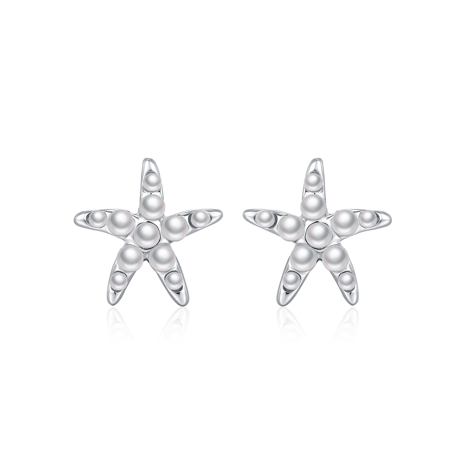 925 Sterling Silver Pearl Starfish Earring Necklace Set 140200013