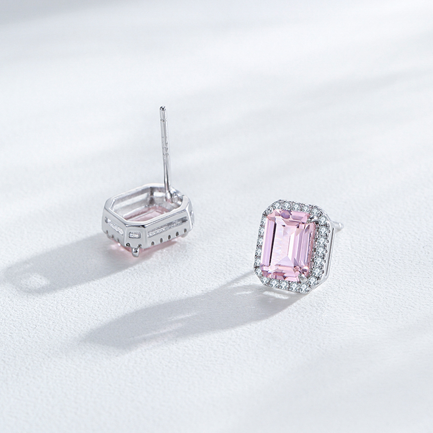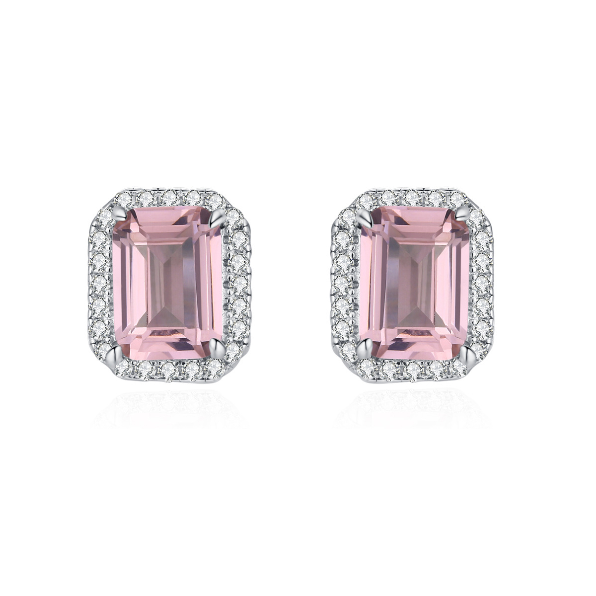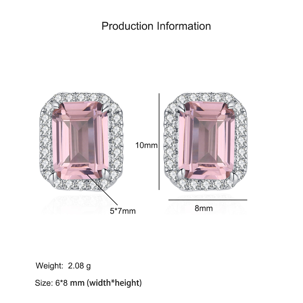 925 Sterling Silver Pink Emerald-Cut Zircon Stud Earring 40200716
