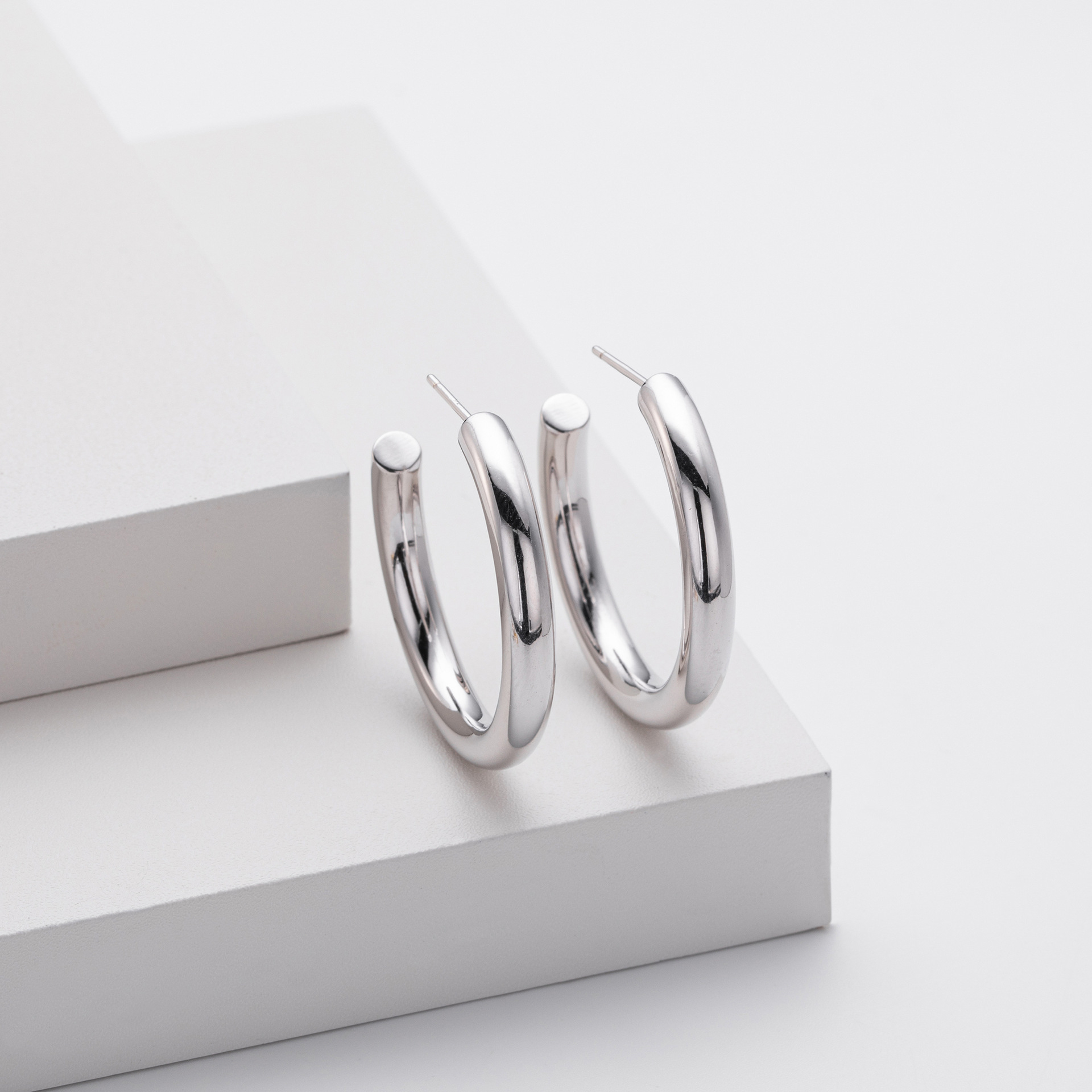 Provide the ultimate wardrobe staple with our Wholesale 925 Sterling Silver Polished Chunky C-Hoop Earrings. C-Hoops are a mandatory item for any jewelry retailer, offering a classic look that never goes out of style. This SKU is available in a range of popular sizes (20mm, 30mm, 40mm) to cater to different customer preferences. The high-polish tubular design gives the appearance of weight and luxury while remaining comfortable for all-day wear. Manufactured from solid S925 sterling silver, these are a reliable, high-turnover product.