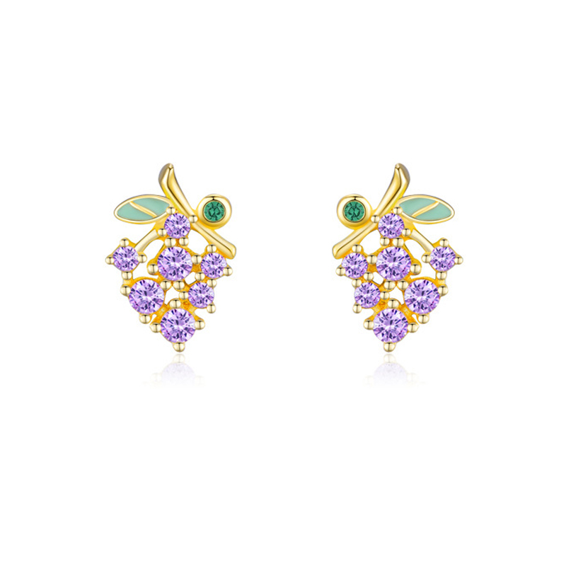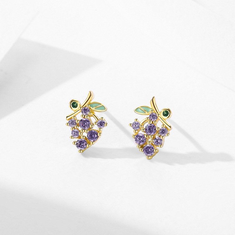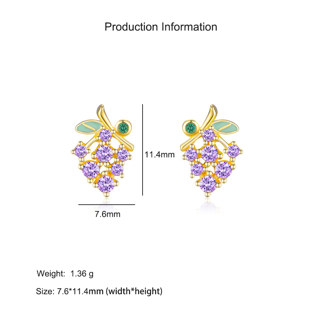 925 Sterling Silver Purple Grape Enamel Zircon Stud Earring 40200668 - image1925 Sterling Silver Purple Grape Enamel Zircon Stud Earring 40200668 - image2