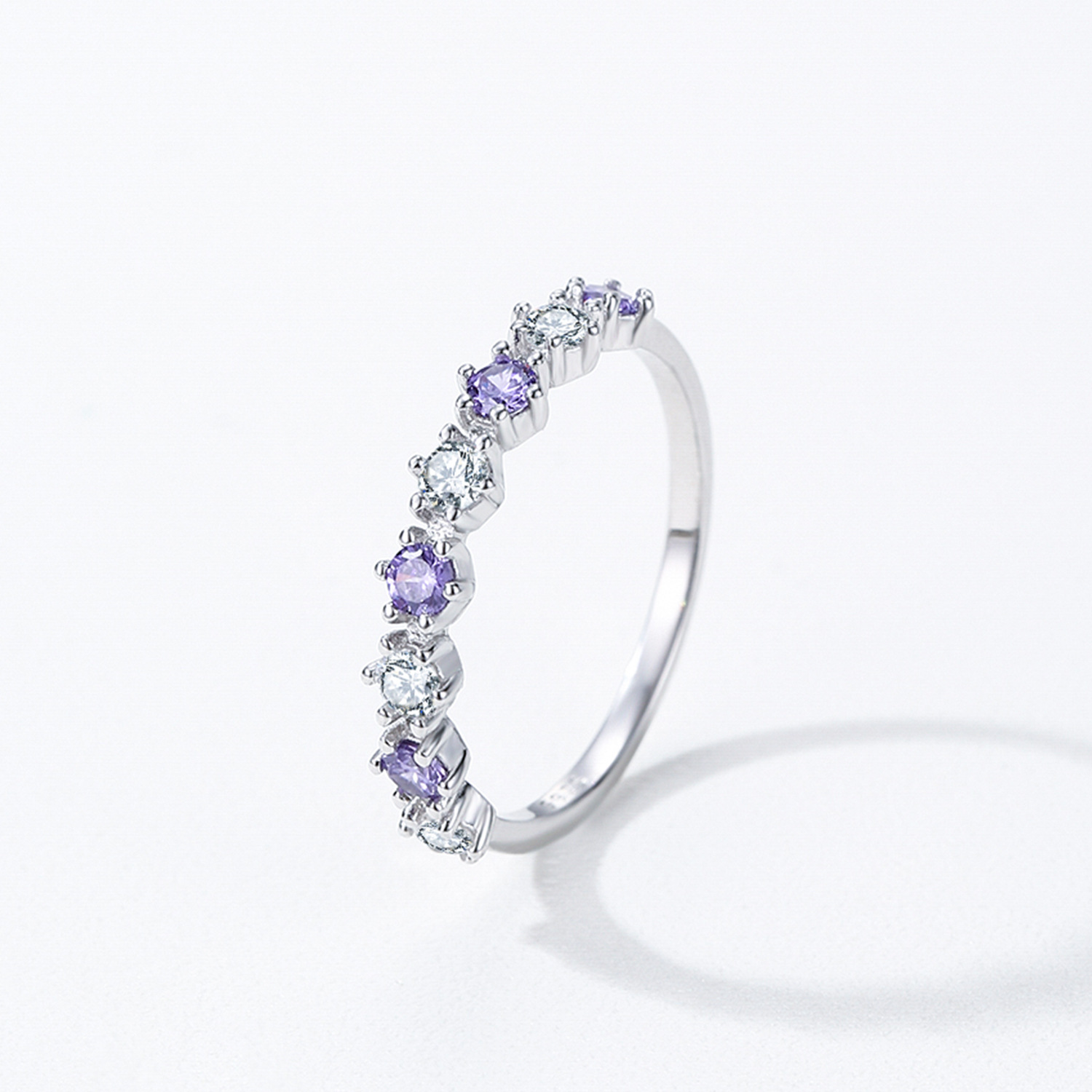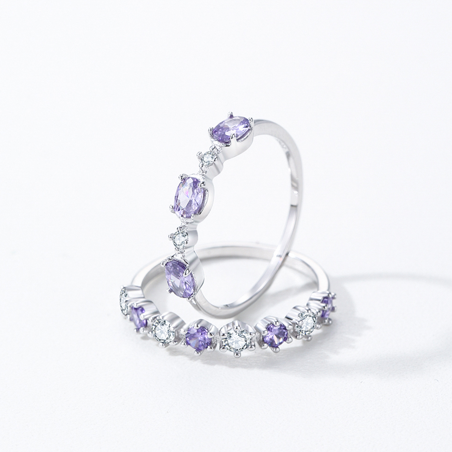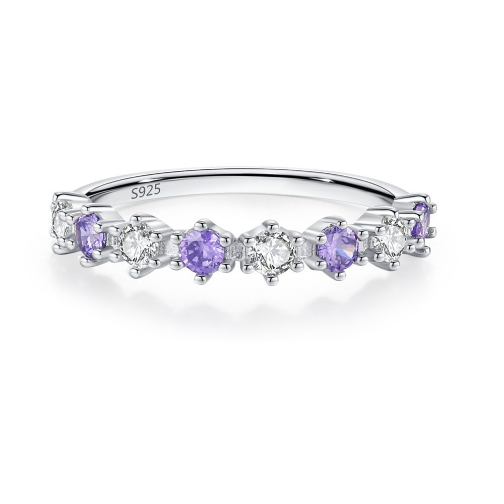 925 Sterling Silver Purple White Zircon Stacking Ring 70100564