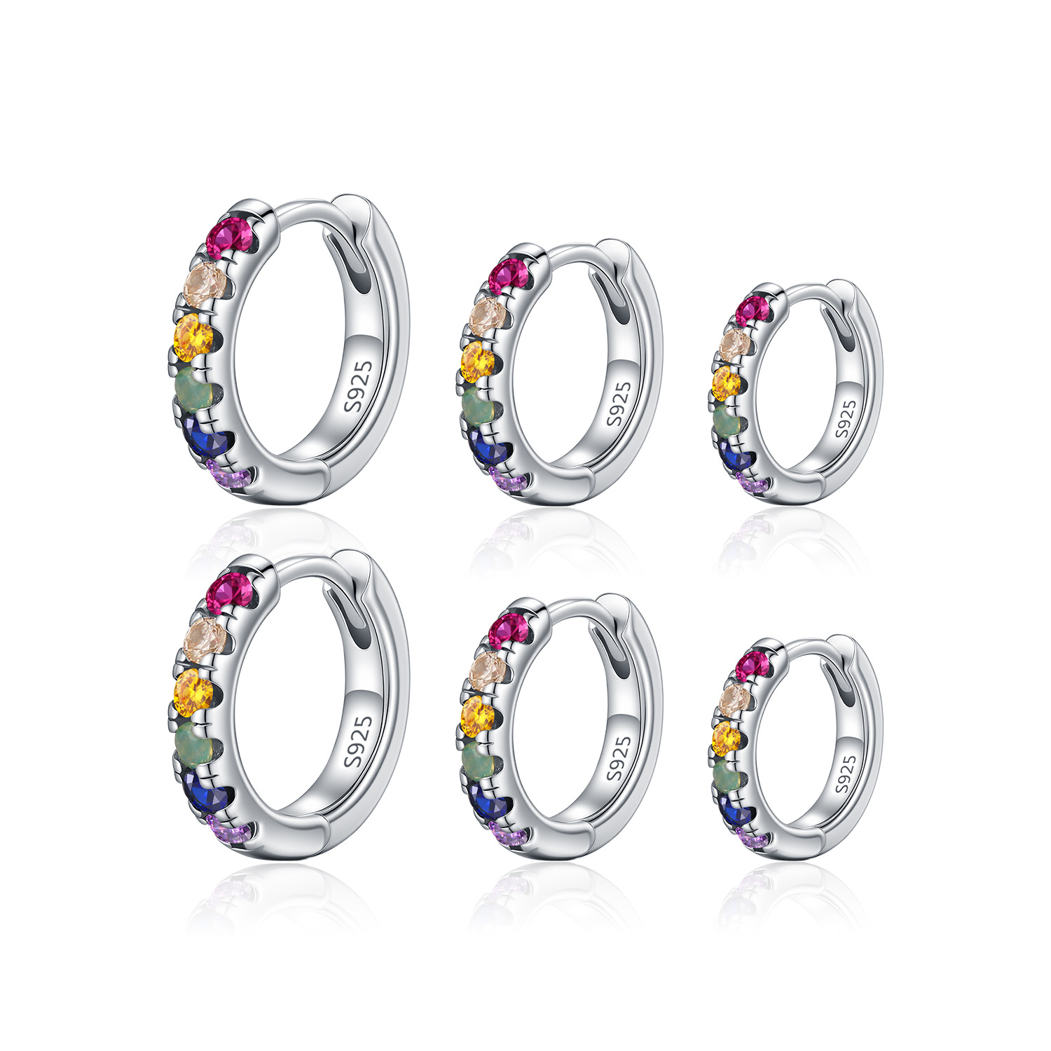 Brighten up your inventory with our Wholesale 925 Sterling Silver Rainbow CZ Huggie Hoop Earrings. "Rainbow" and "Multi-color" jewelry is a strong trend for spring/summer and festival seasons. This SKU features high-quality colored Zircons set in a classic Huggie hoop profile, a top-selling category for everyday wear. The set is available in graduated sizes, allowing for "Earscaping" (multi-piercing styling) which encourages customers to buy multiple pairs. Manufactured from solid S925 sterling silver, these earrings offer durability and vibrant style at a competitive price point.