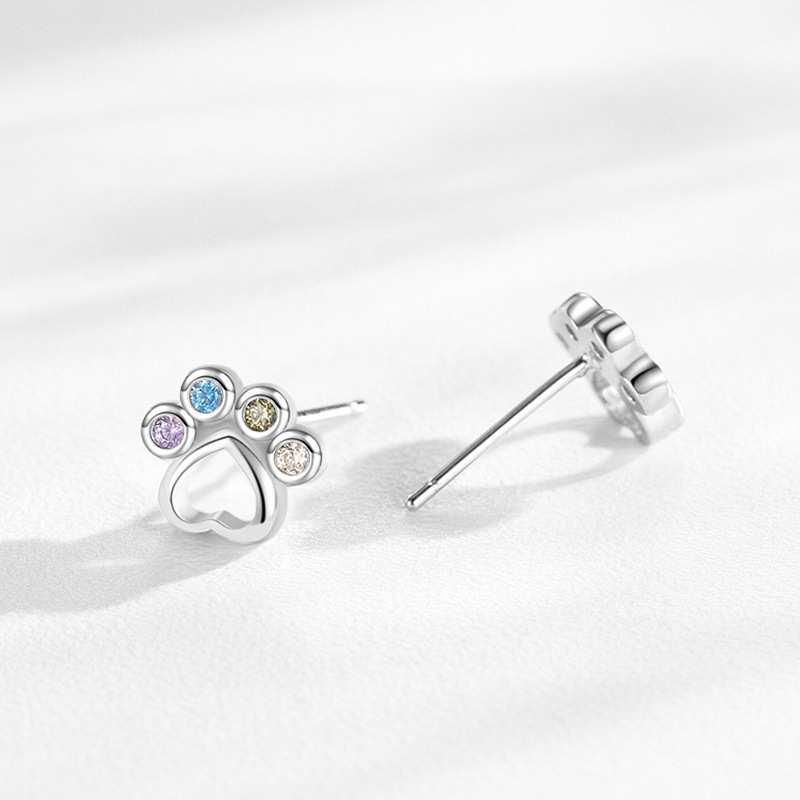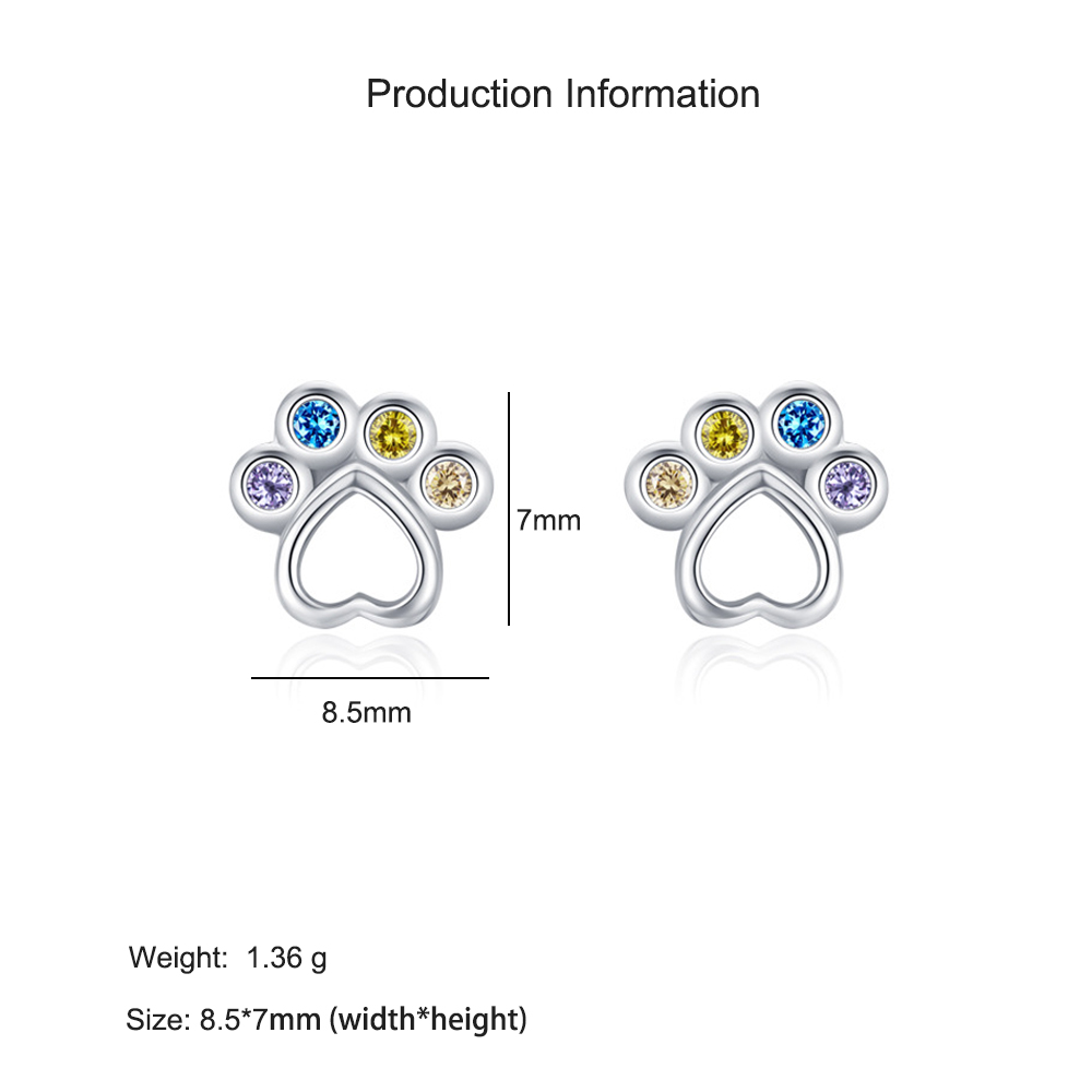 925 Sterling Silver Rainbow Paw Print Zircon Stud Earring 40200665