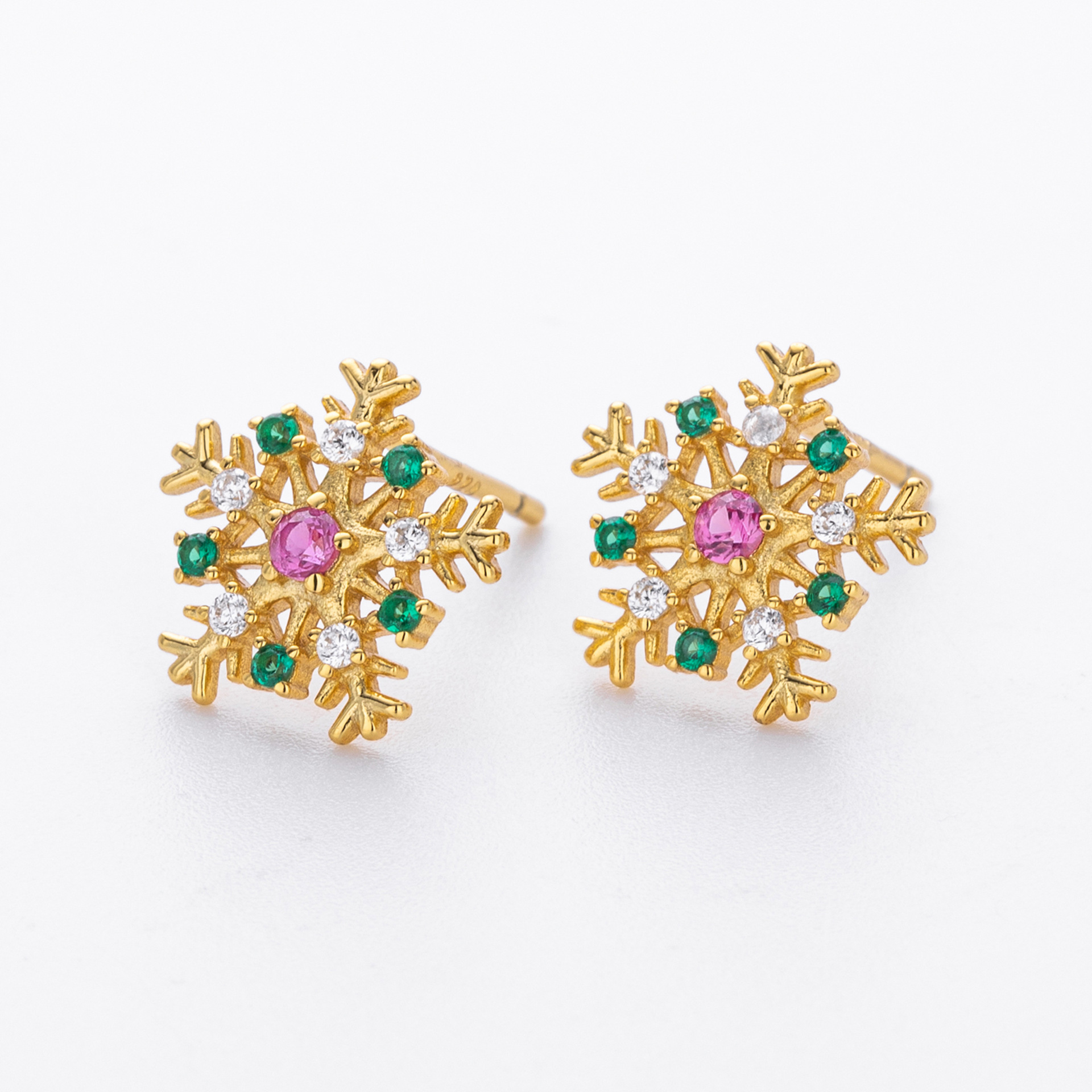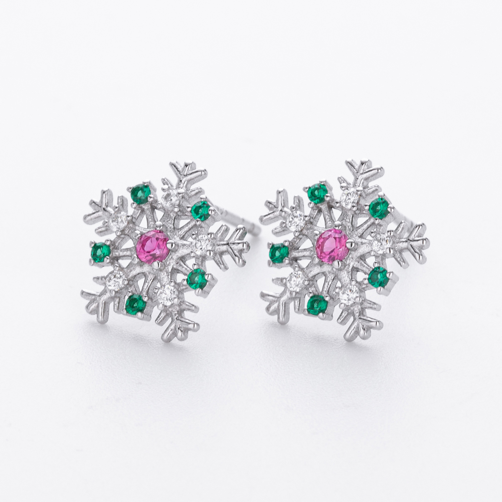 Source a high-impact, seasonal inventory item with our 925 Sterling Silver Red & Green Pave CZ Snowflake Stud Earrings. This design is highly marketable, capitalizing on the strong, consistent demand for Christmas-themed jewelry and the vibrant appeal of red and green colored CZ. The classic snowflake motif ensures strong sales during the holiday period. Crafted from authentic S925 sterling silver, this piece offers reliable quality and high perceived value due to the colorful stone setting. These are excellent, fast-selling seasonal pieces for bulk purchase. Available for competitive wholesale pricing.