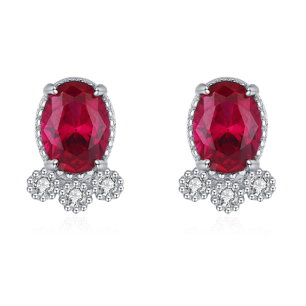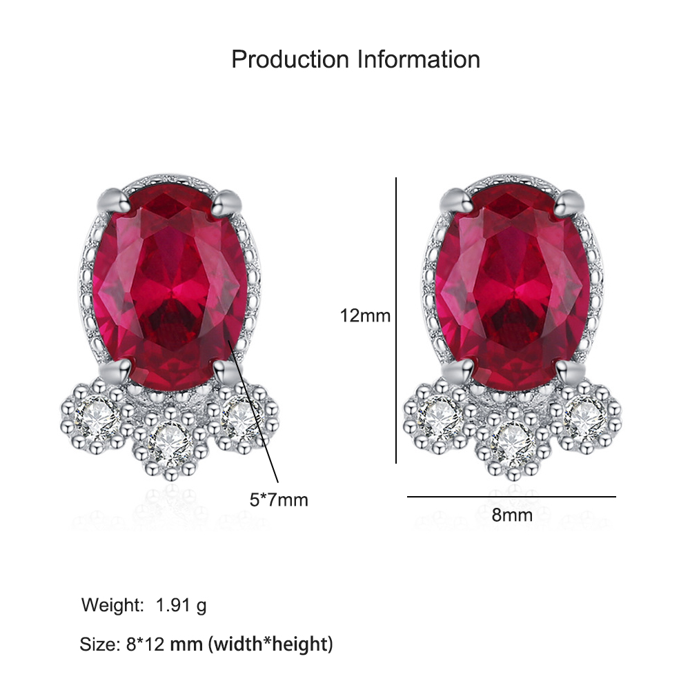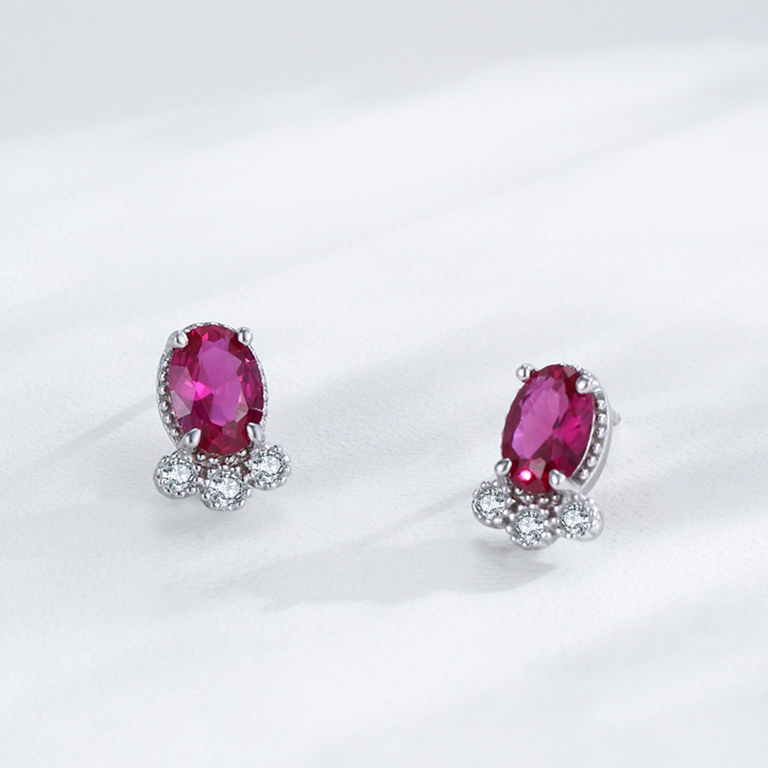 925 Sterling Silver Red Ruby Fish-Shaped Stud Earring 40200701