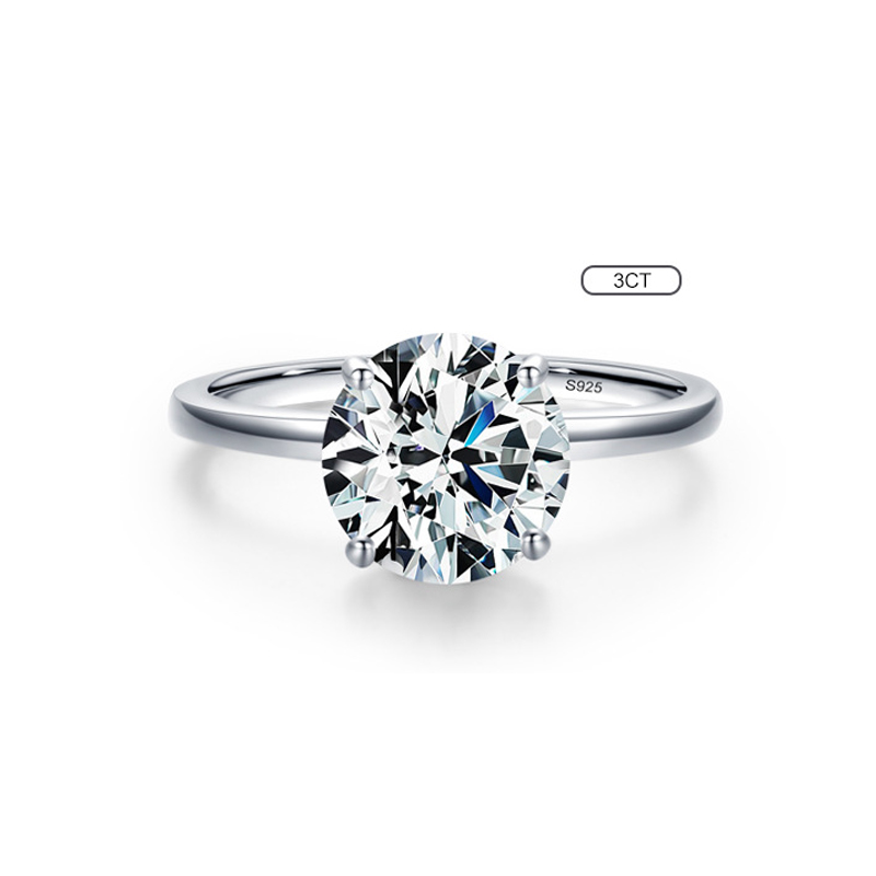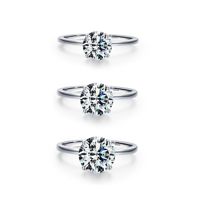 925 Sterling Silver Round-Cut CZ 1/2/3 CT Solitaire Ring 70200332
