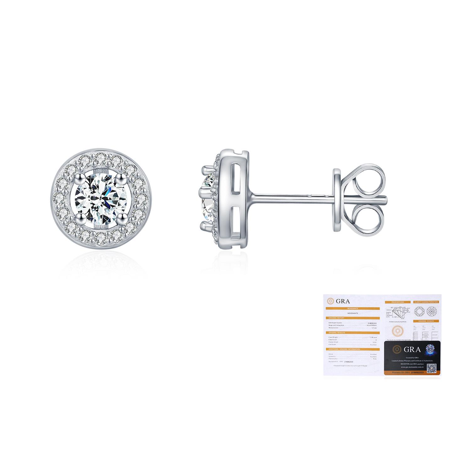925 Sterling Silver Round Cut Halo Pave Moissanite Earrings 110100052
