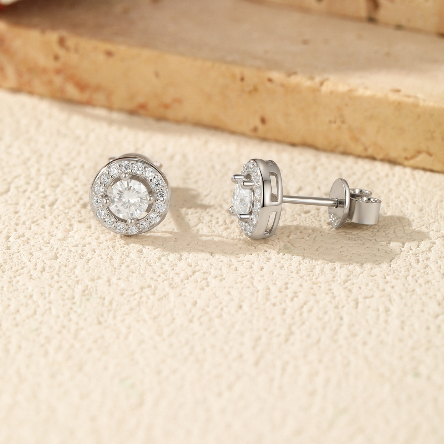 Secure a top-performing inventory staple with our 925 Sterling Silver Round Cut Halo Pave Moissanite Earrings. The Round Halo design is arguably the most popular earring silhouette in the bridal and fine jewelry market. This SKU elevates the standard look by using high-quality Moissanite, offering the fire and brilliance of natural diamonds at a fraction of the cost. The halo setting increases the perceived size and value of the piece. Manufactured from solid S925 sterling silver, these studs are a high-turnover, high-margin essential for any jewelry retailer.