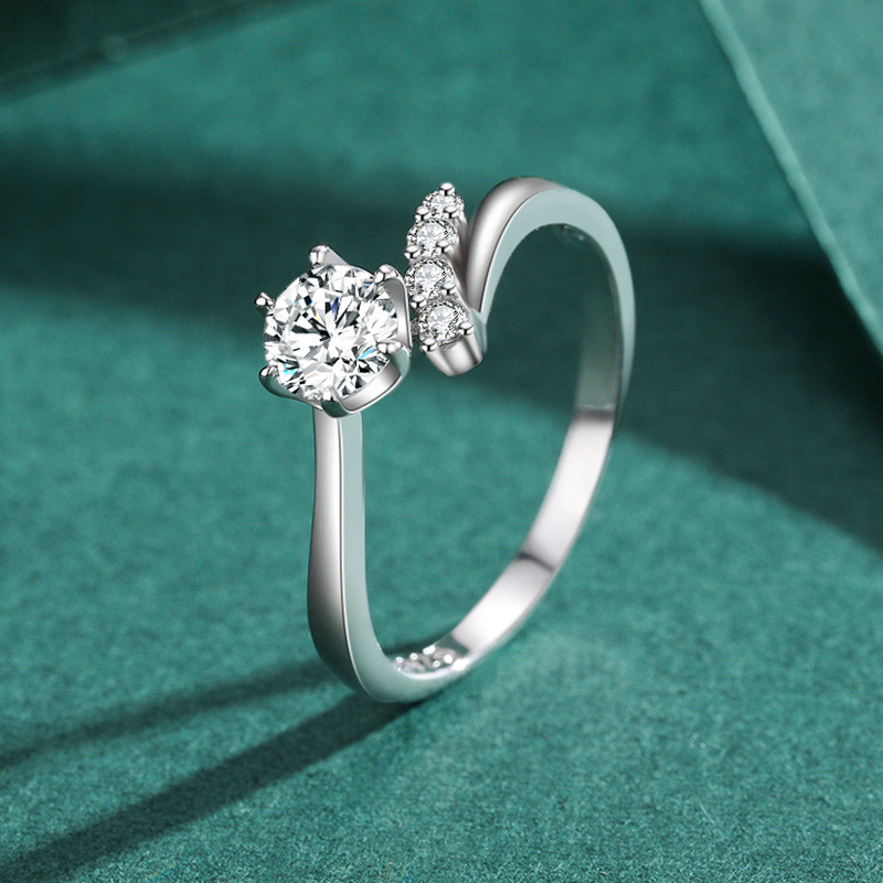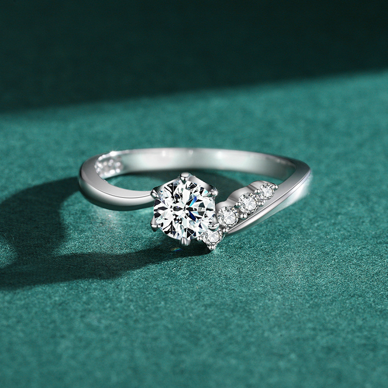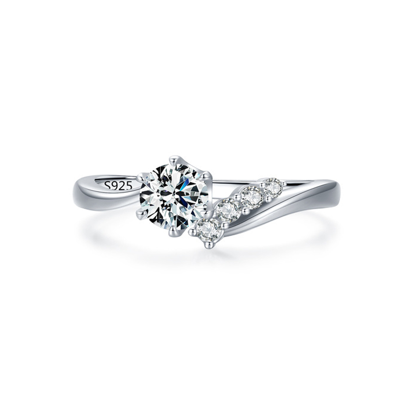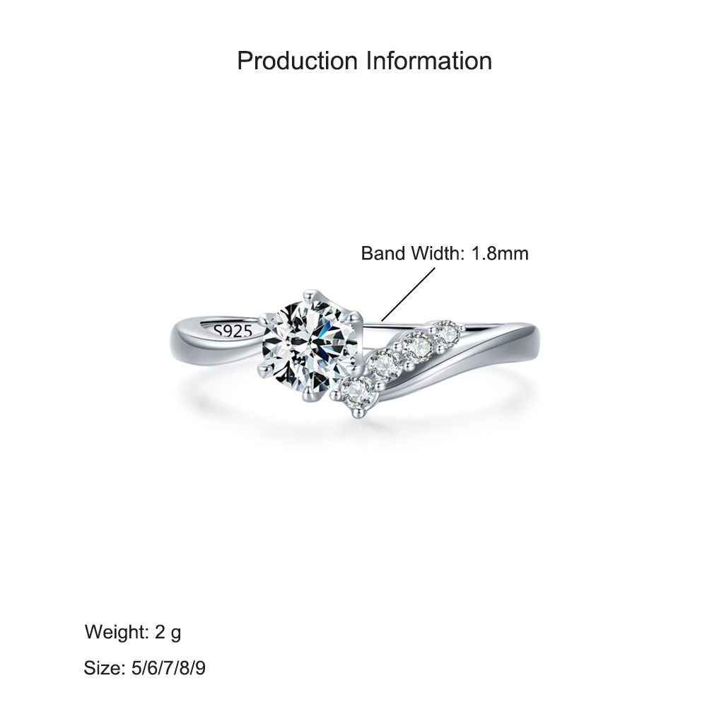This best-selling design combines timeless sparkle with a modern curved band, featuring a round-cut CZ centerpiece and micro-paved side stones. Made of high-quality 925 sterling silver and finished with rhodium plating, this ring delivers a high-end look at an accessible price. Ideal for engagement, bridal, and fashion jewelry collections, offering strong retail appeal and consistent resale value.