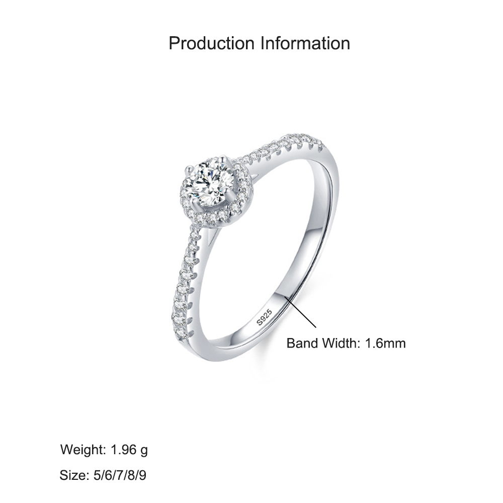 Delicate yet dazzling, this 925 sterling silver ring showcases a brilliant round-cut cubic zirconia encircled by a halo of smaller stones for extra radiance. The slender pavé band adds a refined sparkle, balancing luxury and simplicity. Crafted from high-quality sterling silver and plated in rhodium for a mirror-like finish, it’s perfect for engagement, anniversary, or everyday elegance.