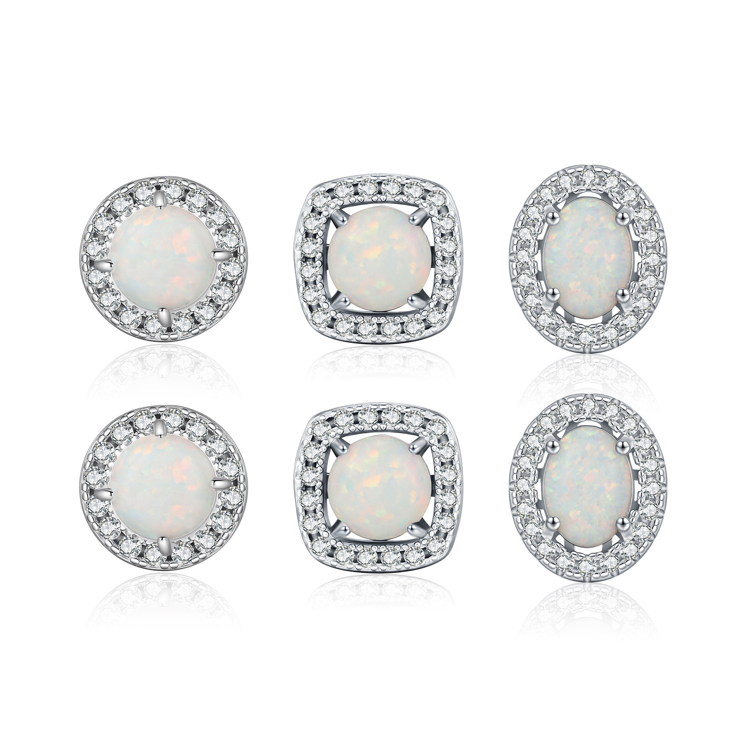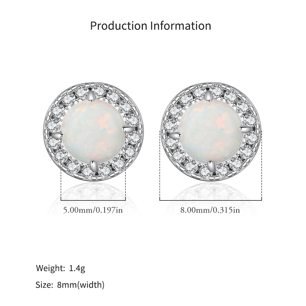 925 Sterling Silver Round Lab Opal Halo Stud Earrings 40700048