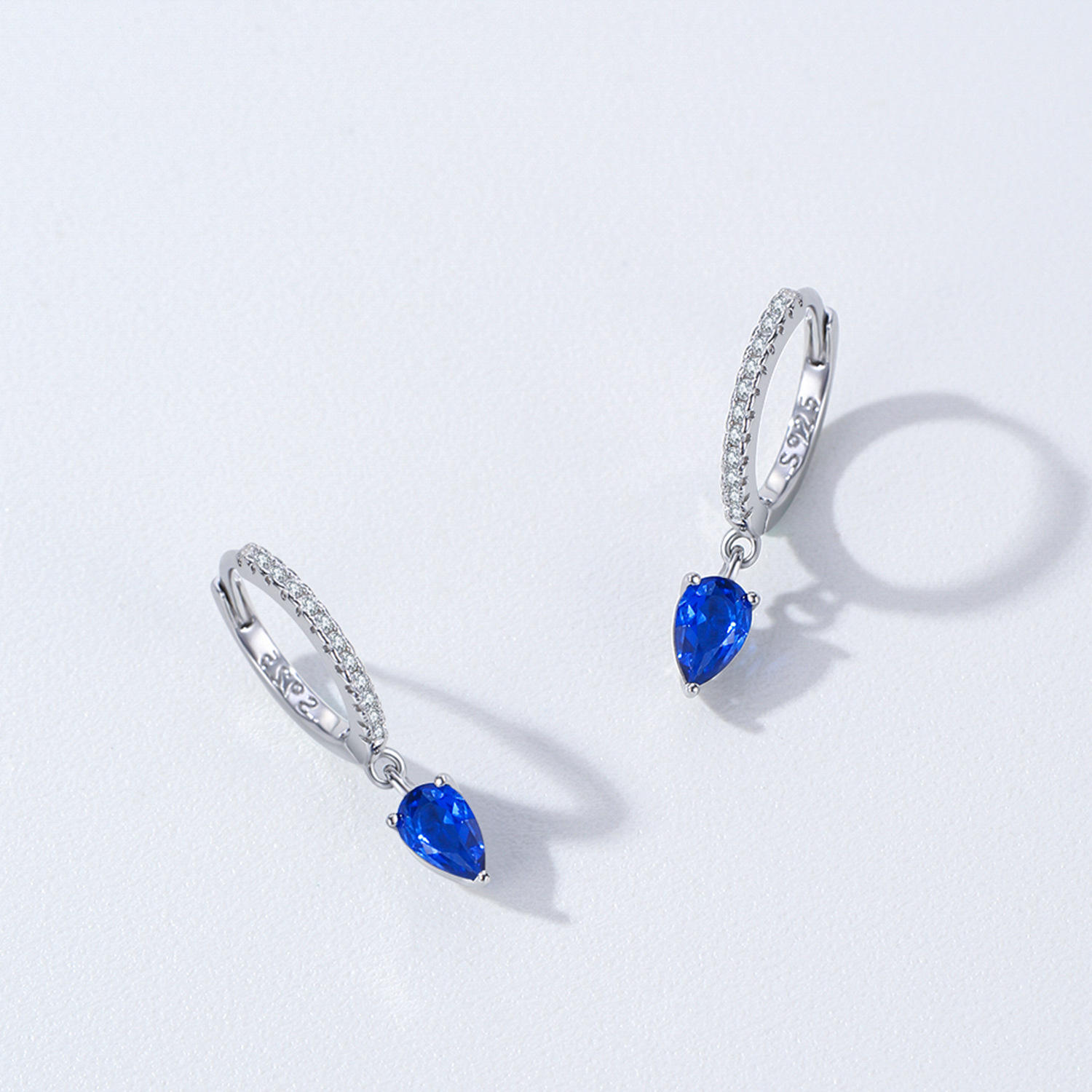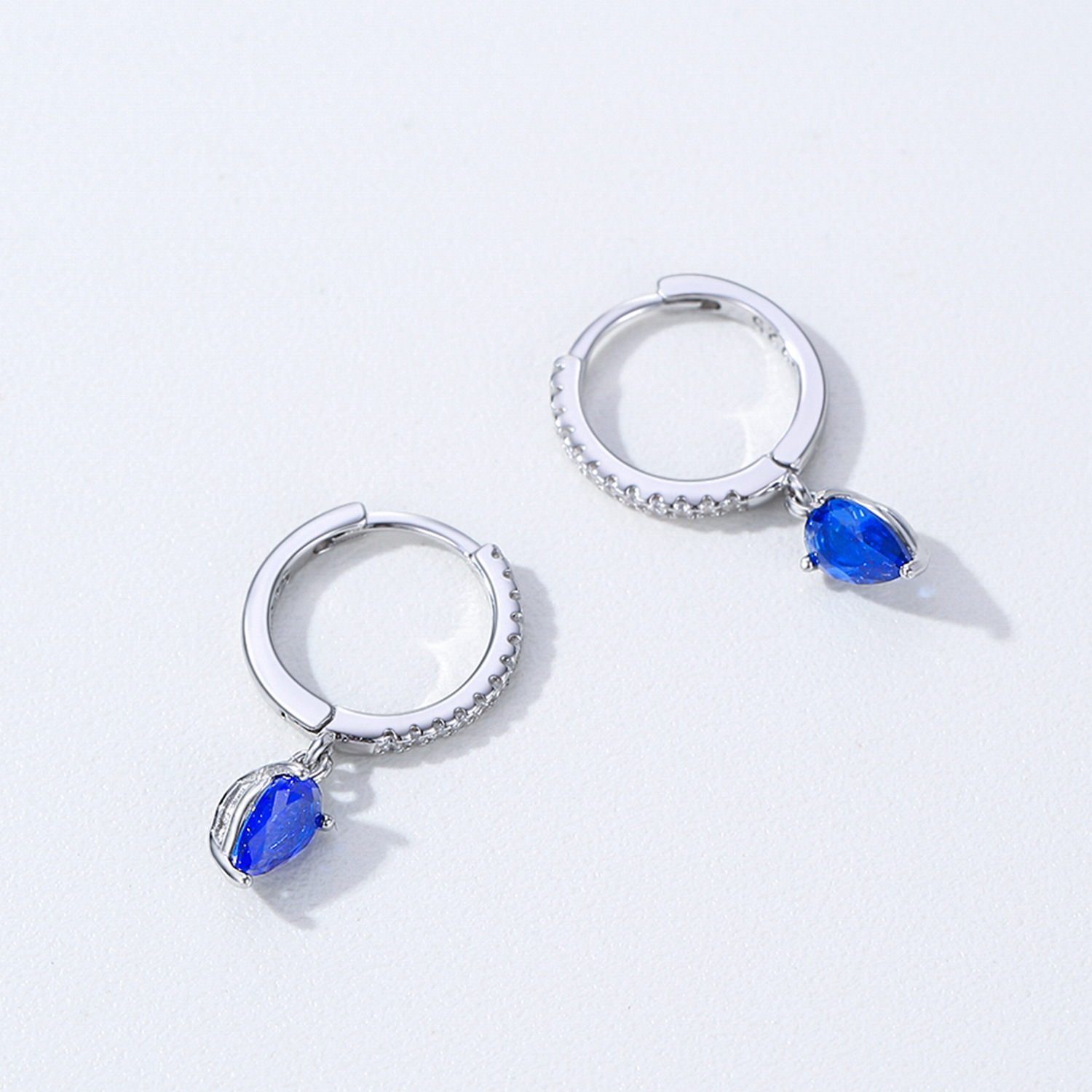 925 Sterling Silver Royal Blue Teardrop Zircon Hoop Earring 60300214