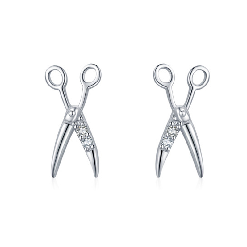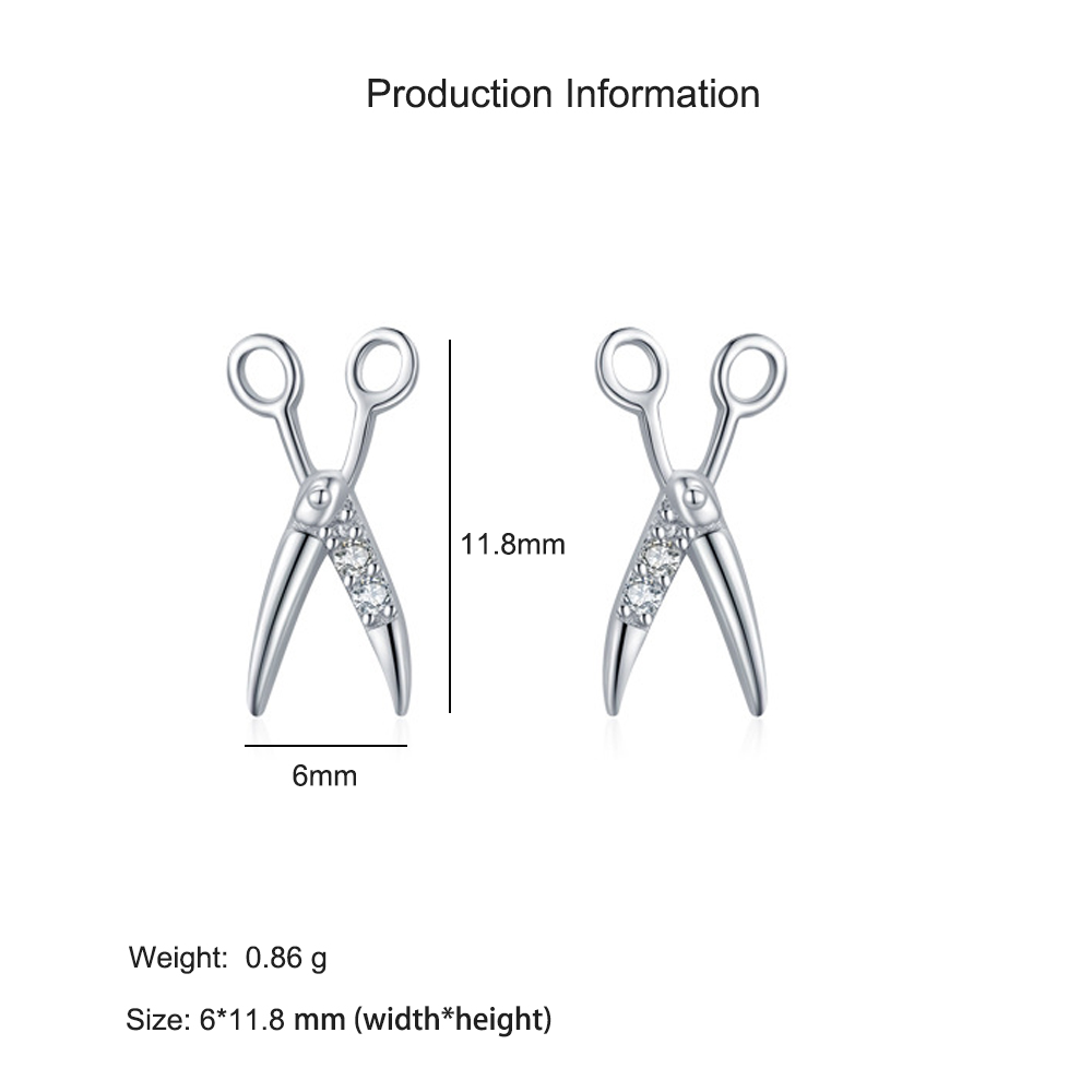 925 Sterling Silver Scissor-Shaped Zircon Stud Earring 40200702 - image1925 Sterling Silver Scissor-Shaped Zircon Stud Earring 40200702 - image2