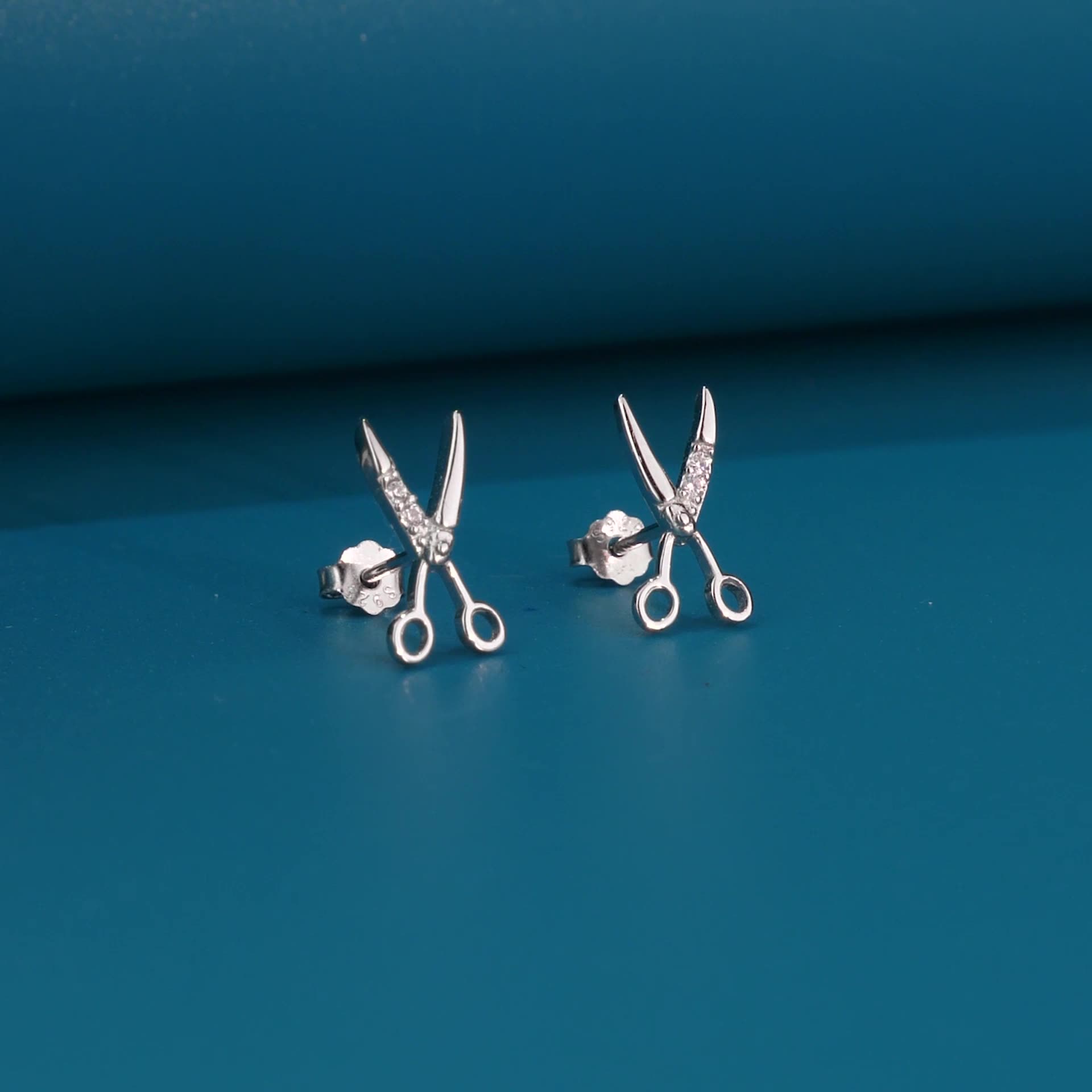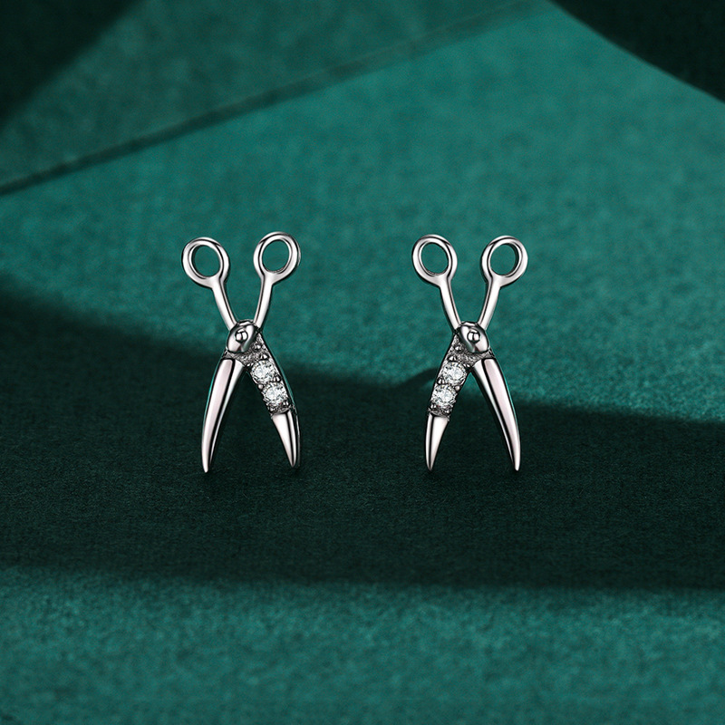 These 925 sterling silver scissor-shaped stud earrings offer a fun and fashionable twist on classic jewelry design. The delicate scissor silhouette is accented with sparkling zircon stones, adding a subtle shimmer that catches the eye. Perfect for hair stylists, artists, or anyone who loves creative and symbolic accessories. Made from hypoallergenic sterling silver, these earrings are lightweight, comfortable, and ideal for everyday wear.