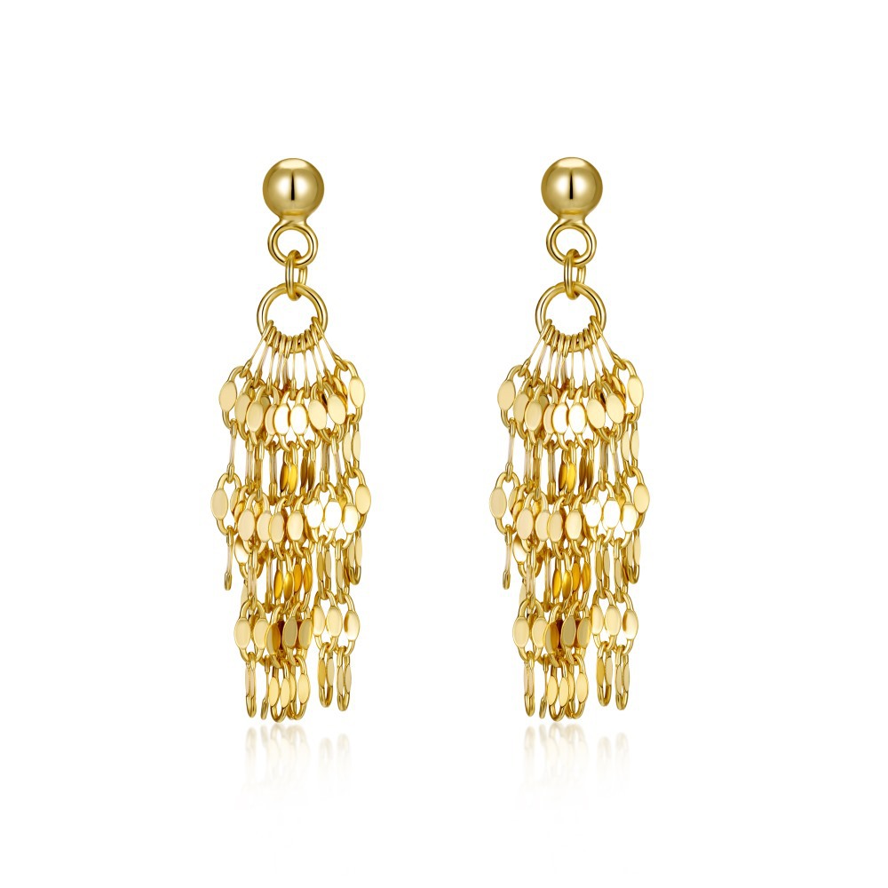 Maximize your plain-metal margins with our Wholesale 925 Silver Sequin Chain Tassel Drop Earrings. Kinetic, movement-heavy designs and "light luxury" styles are massive retail drivers. This spectacular SKU features a polished ball stud suspending a sweeping multi-strand tassel made entirely of light-catching disc chains. Available in highly commercial silver and gold finishes, these hypoallergenic S925 earrings deliver incredible volume and boutique-level perceived value without the added cost of stone-setting. A mandatory, fast-turning anchor for your "Evening Glamour" and "Statement Metals" collections.