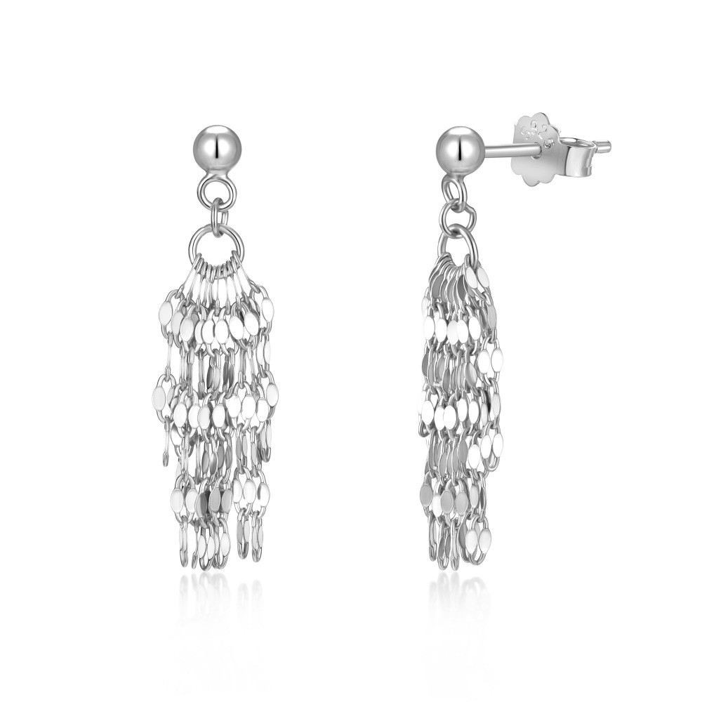 925 Sterling Silver Sequin Chain Tassel Drop Stud Earrings 40400152