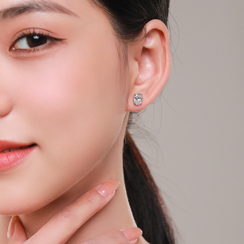 These 925 sterling silver stud earrings feature dazzling oval-cut zircon stones that radiate timeless brilliance. Expertly crafted with a secure four-prong setting, they deliver a refined, minimalist look that complements both casual and formal outfits. Perfect for everyday elegance or special occasions, these earrings add a sophisticated sparkle while offering hypoallergenic comfort and lasting shine.