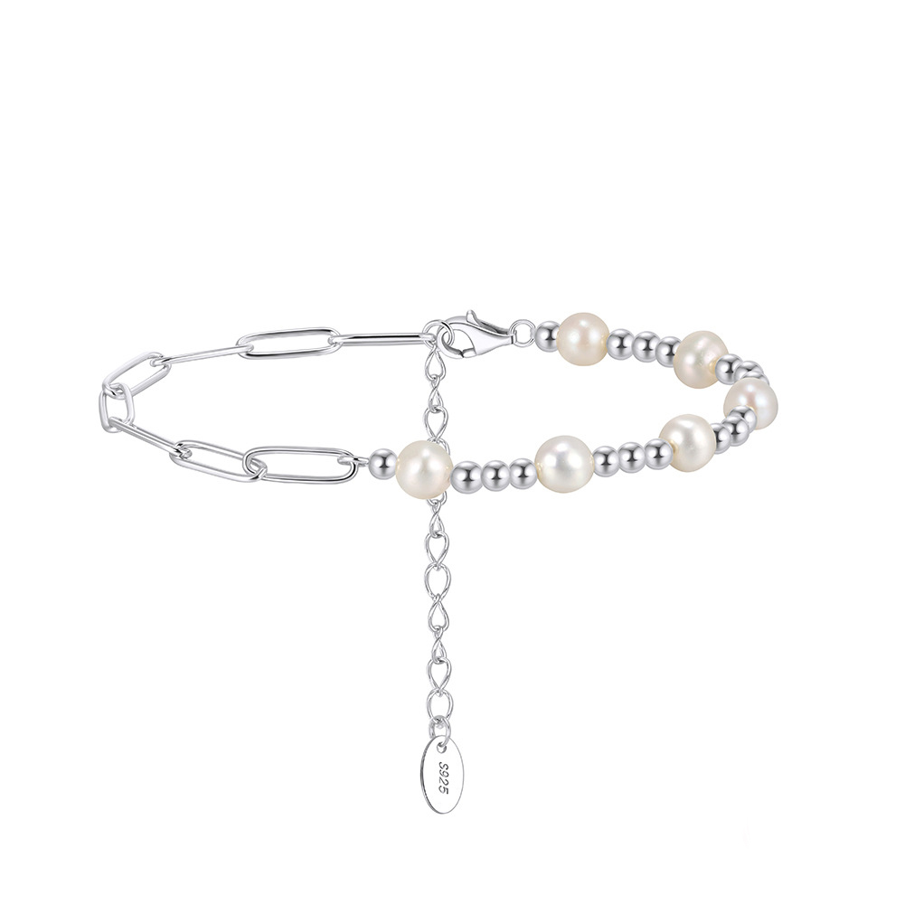 925 Sterling Silver Spliced Paperclip Pearl Bracelet 100500052