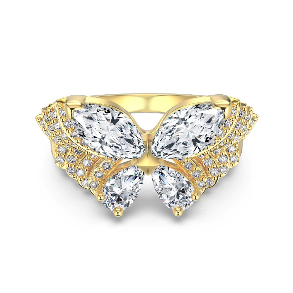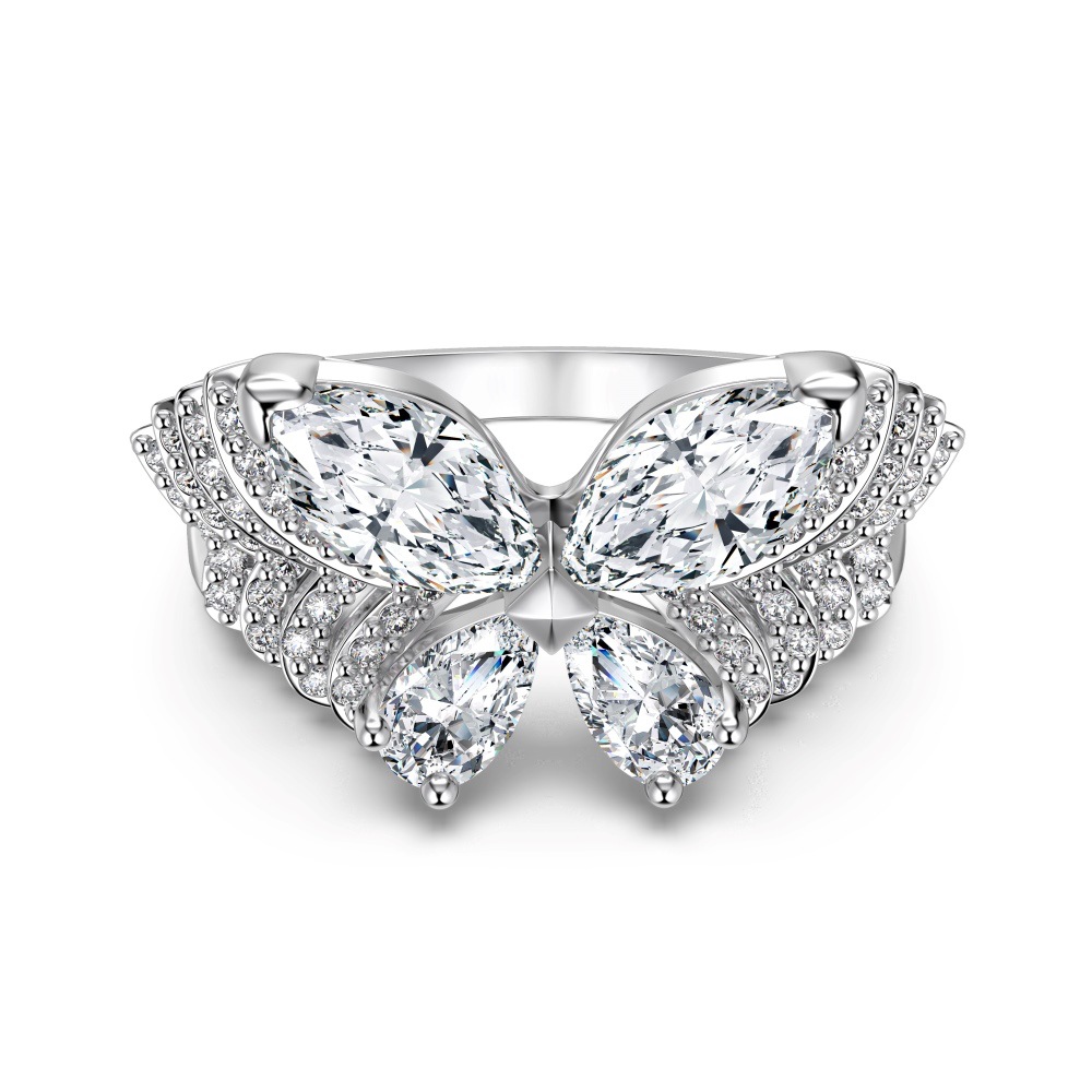 Elevate your high-end inventory with our wholesale-exclusive spliced zircon butterfly ring. Nature-inspired motifs are massive retail drivers, and this piece innovates the trend by utilizing precision-cut marquise and pear-shaped crystals to form a breathtaking butterfly silhouette. Enhanced with intricate micro-pave detailing on the wings and band, this design maximizes light return and offers exceptional perceived carat size. Crafted from hypoallergenic S925 silver and available in highly requested gold and silver finishes, it delivers fine-jewelry-level craftsmanship at competitive bulk pricing. A mandatory, high-margin anchor for your luxury statement and romantic gifting assortments.