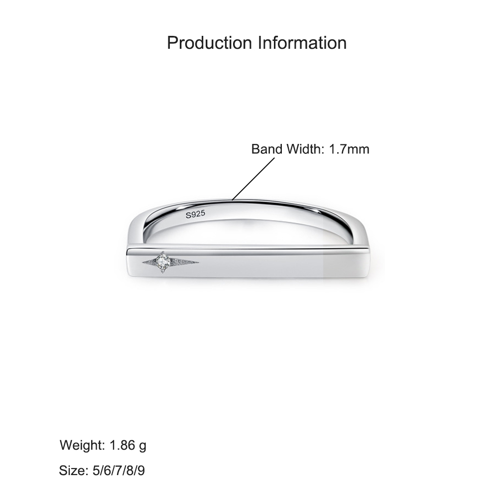 This sleek and modern 925 sterling silver ring stands out with its geometric bar design and subtle micro-pavé cubic zirconia accent. The clean lines create a minimalist yet stylish aesthetic, making it a perfect everyday accessory for both men and women who appreciate understated luxury. Crafted from high-quality sterling silver, this ring offers lasting shine, durability, and a comfortable fit. Ideal for stacking or wearing solo for a refined, contemporary look.