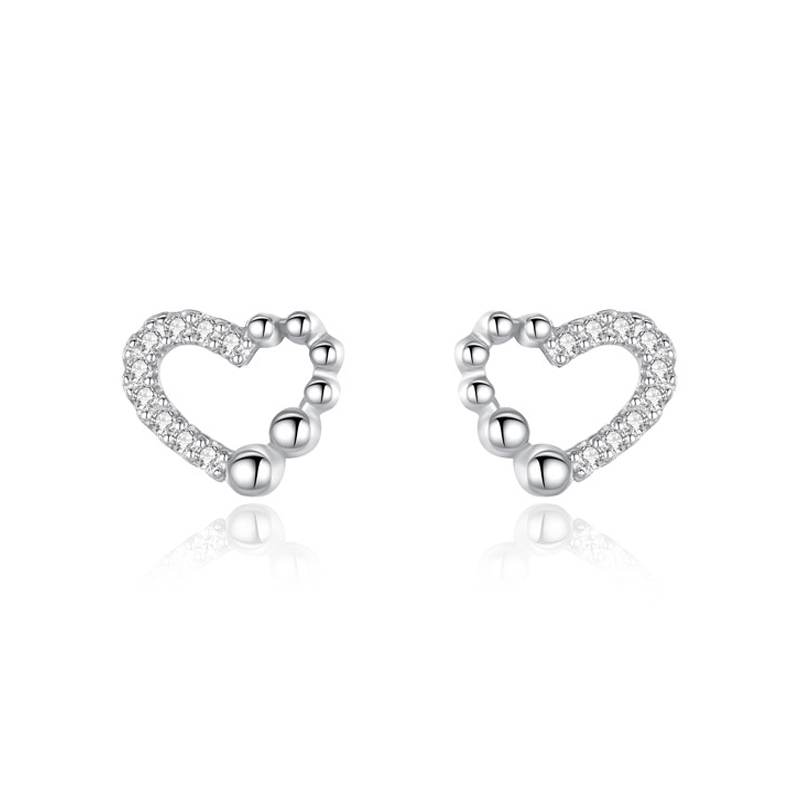 925 Sterling Silver Sweet Beaded Heart Zircon Stud Earring 40200720
