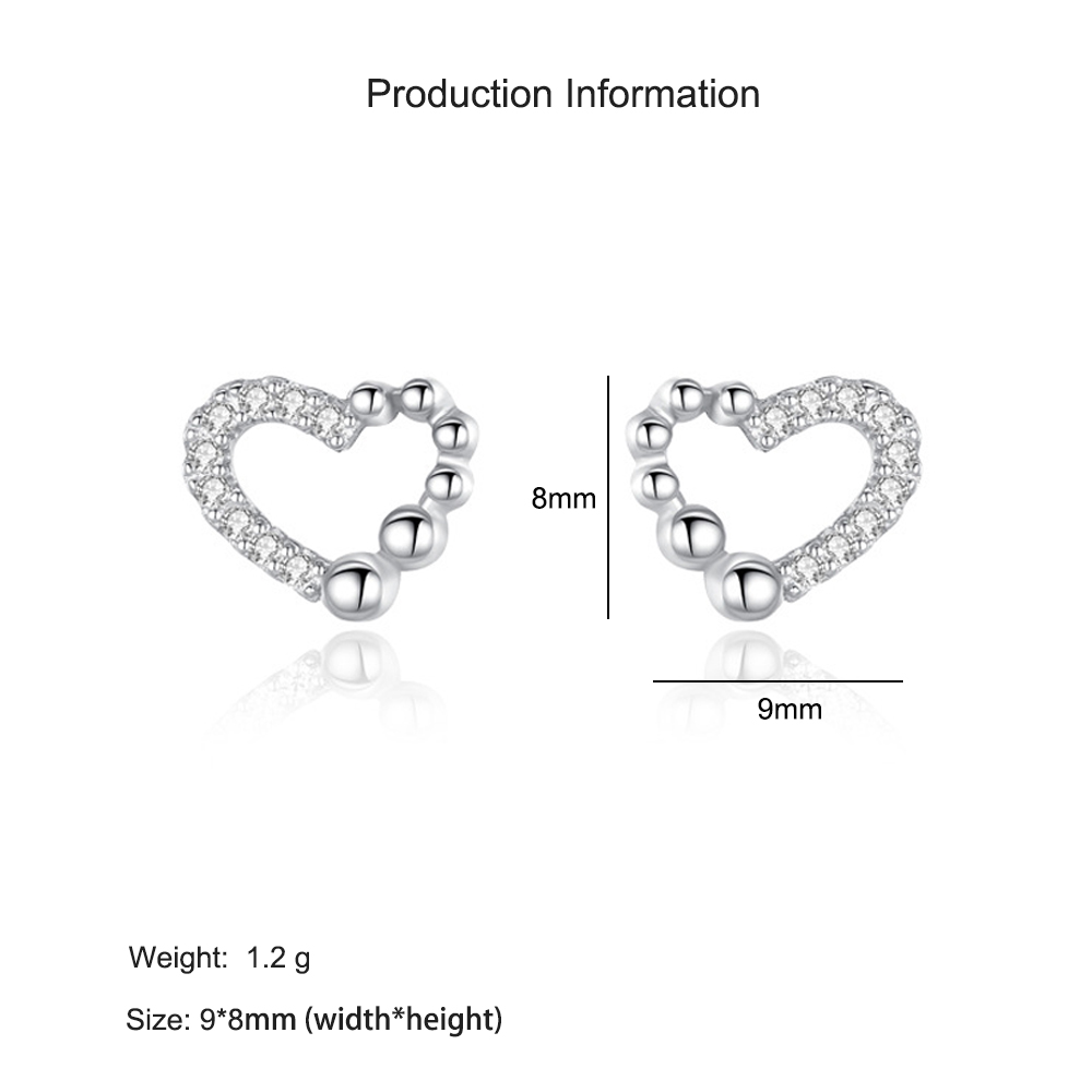 925 Sterling Silver Sweet Beaded Heart Zircon Stud Earring 40200720 - image1925 Sterling Silver Sweet Beaded Heart Zircon Stud Earring 40200720 - image2