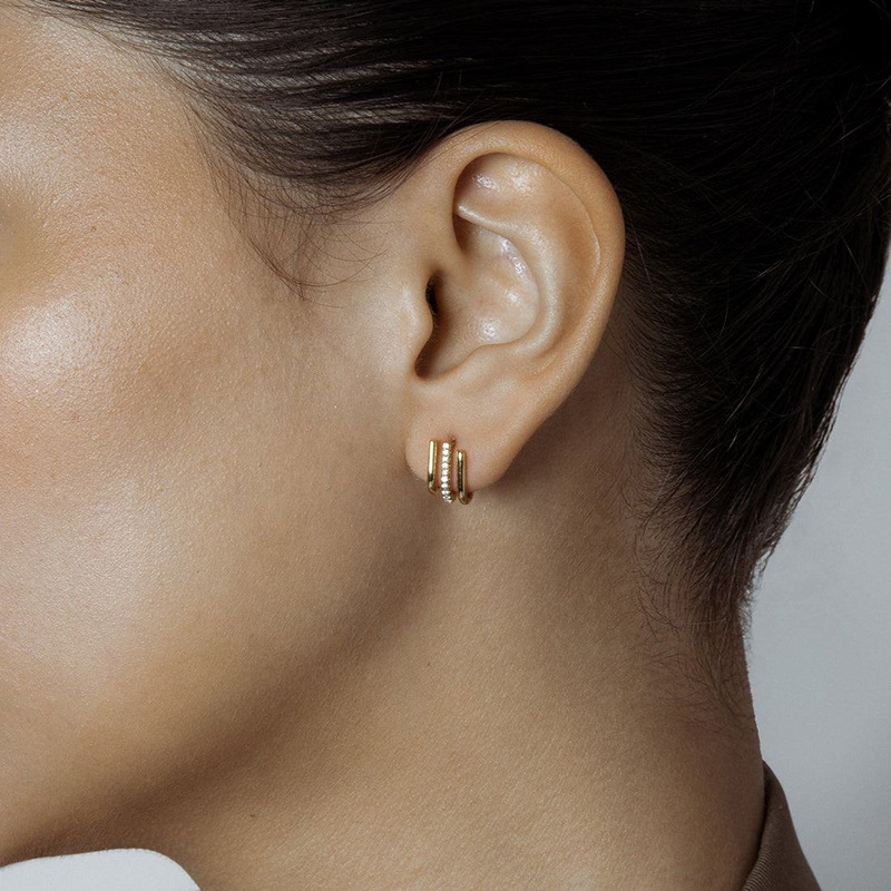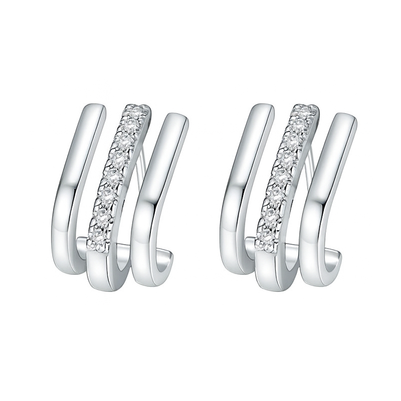925 Sterling Silver Triple-Layer Pave CZ J-Shaped Huggie Stud Earring 40200629