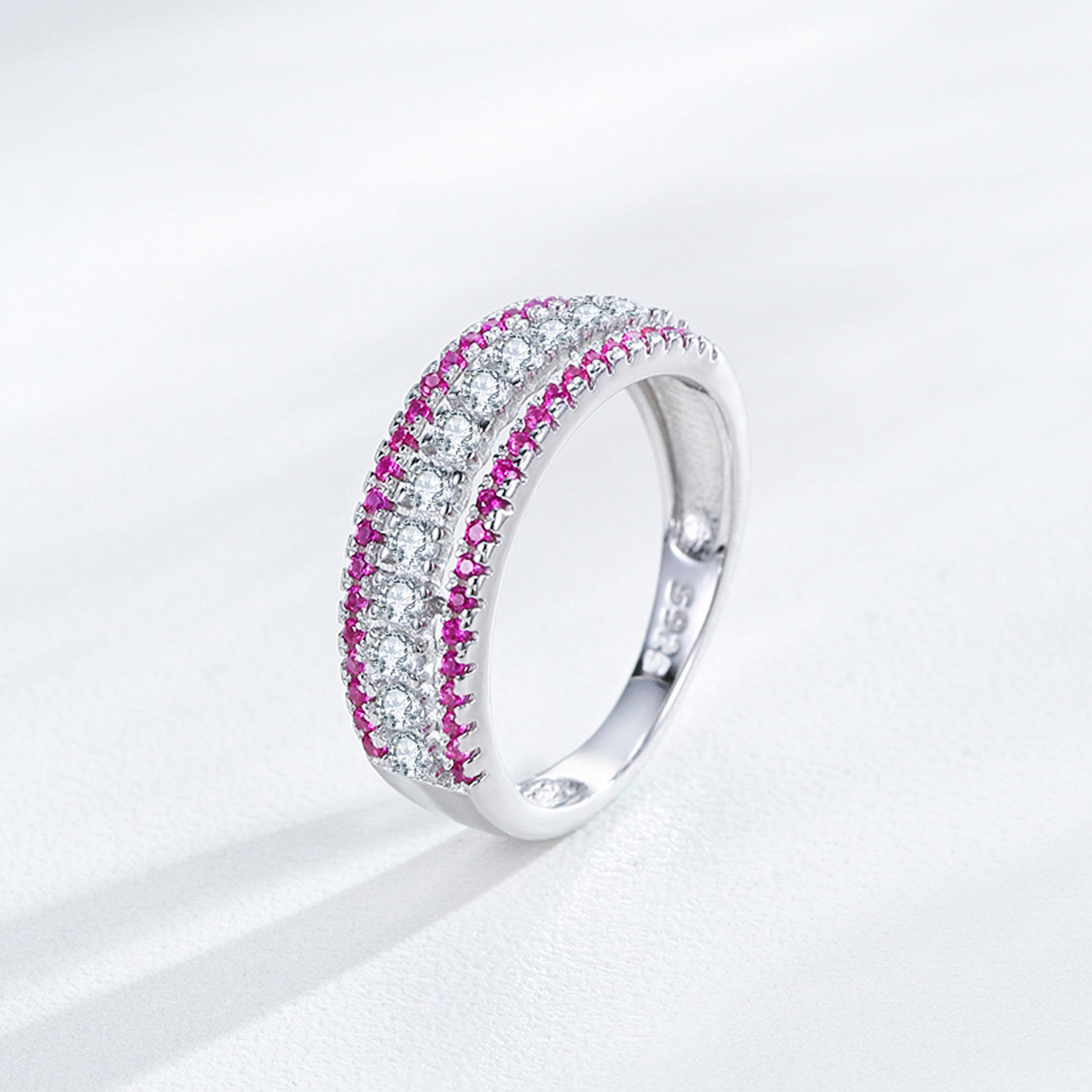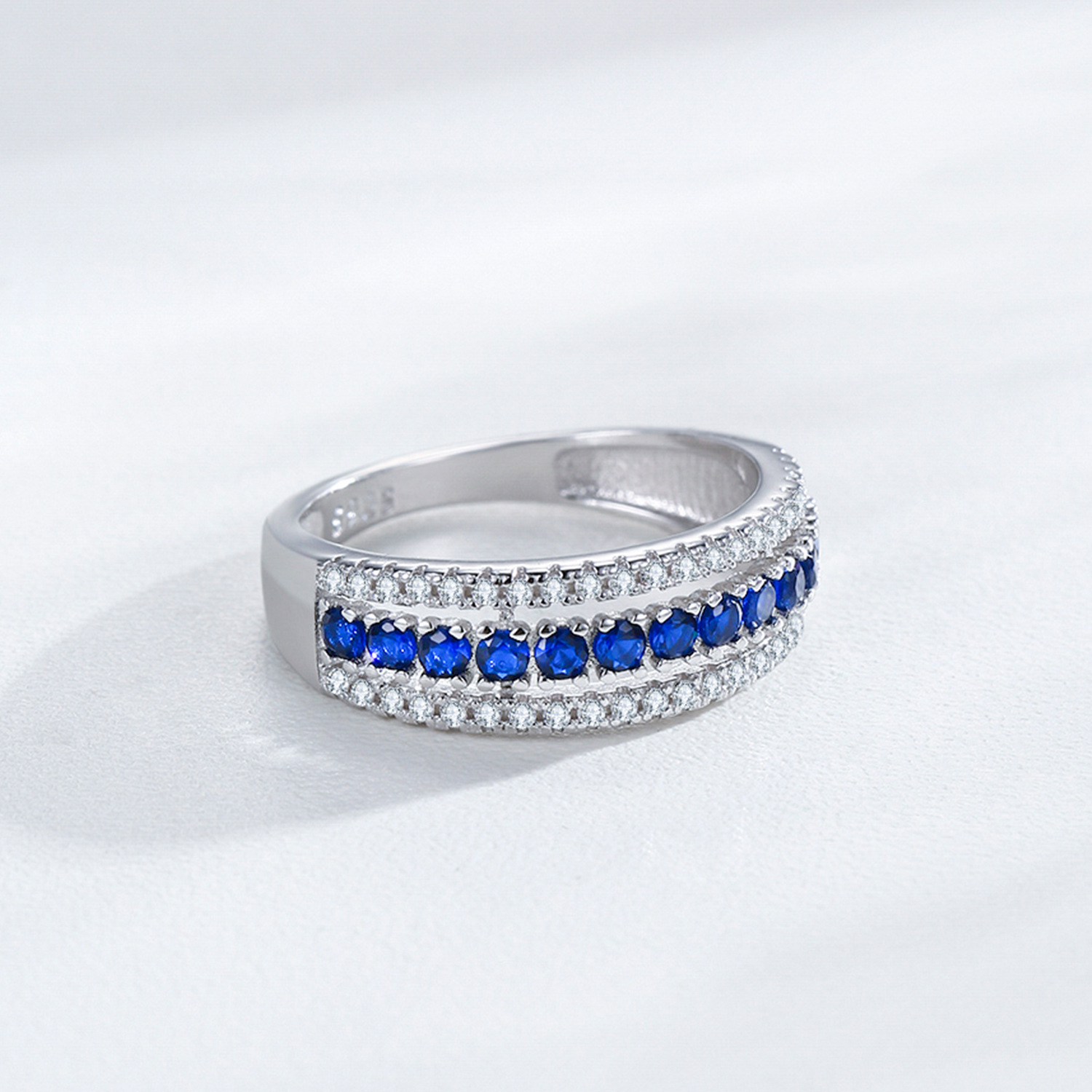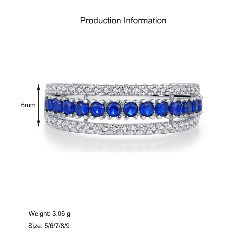 Add a touch of brilliance to your look with this 925 sterling silver triple-row zircon ring, available in elegant pink and royal blue options. Each ring features three meticulously micro-pavé rows of sparkling cubic zirconia that shimmer with every movement. The center row of colored stones contrasts beautifully with the white zircon sides, creating a refined and modern look. Perfect for special occasions or everyday elegance, this ring pairs effortlessly with other jewelry and makes a thoughtful gift for those who love timeless sparkle.