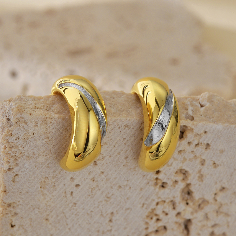 Source a high-demand, foundational inventory item with our 925 Sterling Silver Two-Tone C-Shape Minimalist Stud Earrings. This design is highly marketable, capitalizing on the popularity of minimalist jewelry and the highly versatile two-tone aesthetic, which appeals to customers who prefer mixed metals. The simple C-shape provides a clean, classic silhouette. Crafted from authentic 925 sterling silver, this piece offers reliable quality and broad market appeal. These are excellent, reliable, fast-selling staple pieces for bulk purchase. Available for competitive wholesale pricing.