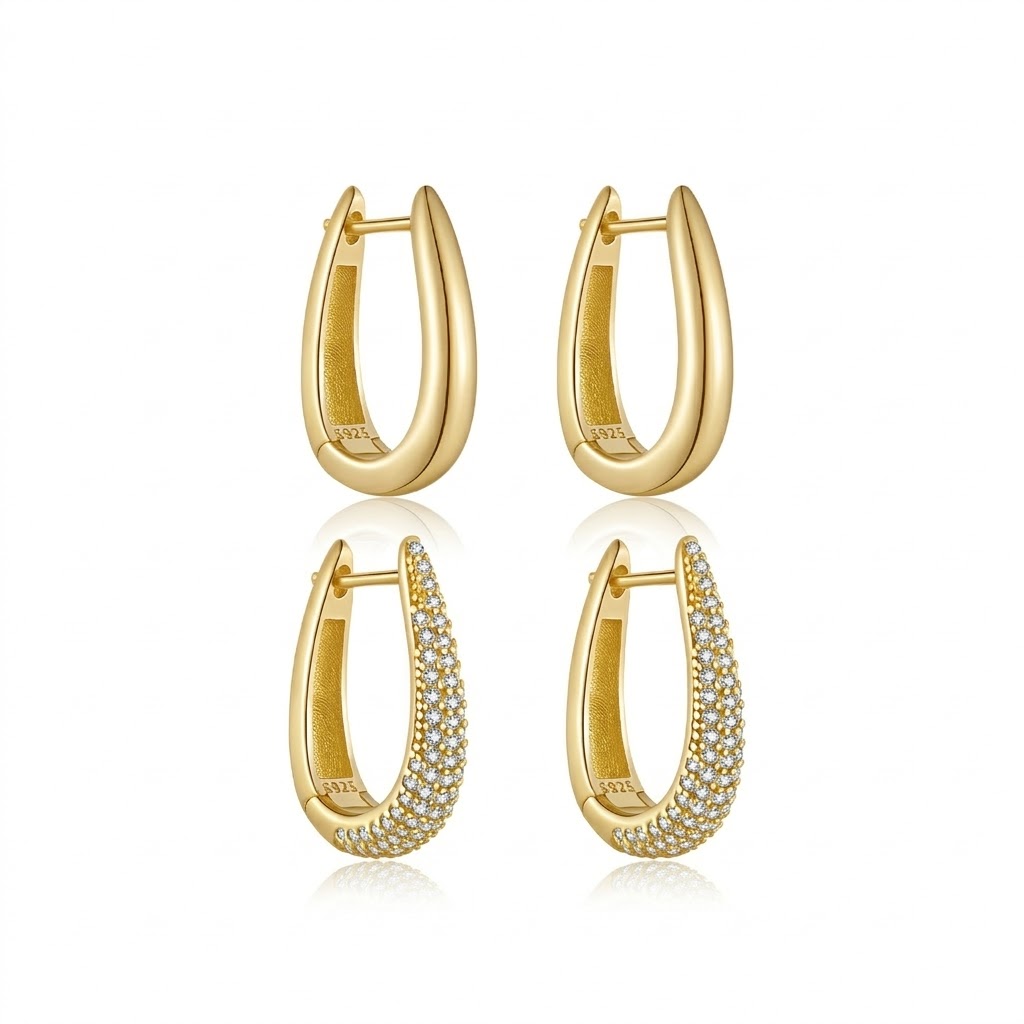 Maximize your margins with our Wholesale 925 Sterling Silver U-Shaped Huggie Hoops. Chunky, tapered silhouettes are dominating the "ear stacking" trend. This highly commercial SKU offers incredible versatility, available in both sleek high-polish and brilliant micro-pave finishes. Crafted from hypoallergenic S925 silver with secure snap closures, they deliver exceptional comfort and boutique-quality appeal. Stock these high-turnover staples in both gold and silver as mandatory anchors for your "Everyday Essentials" collection.