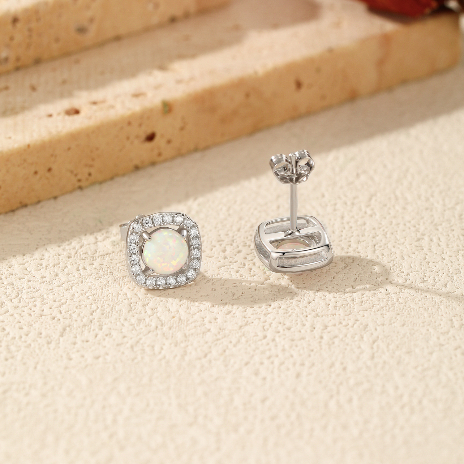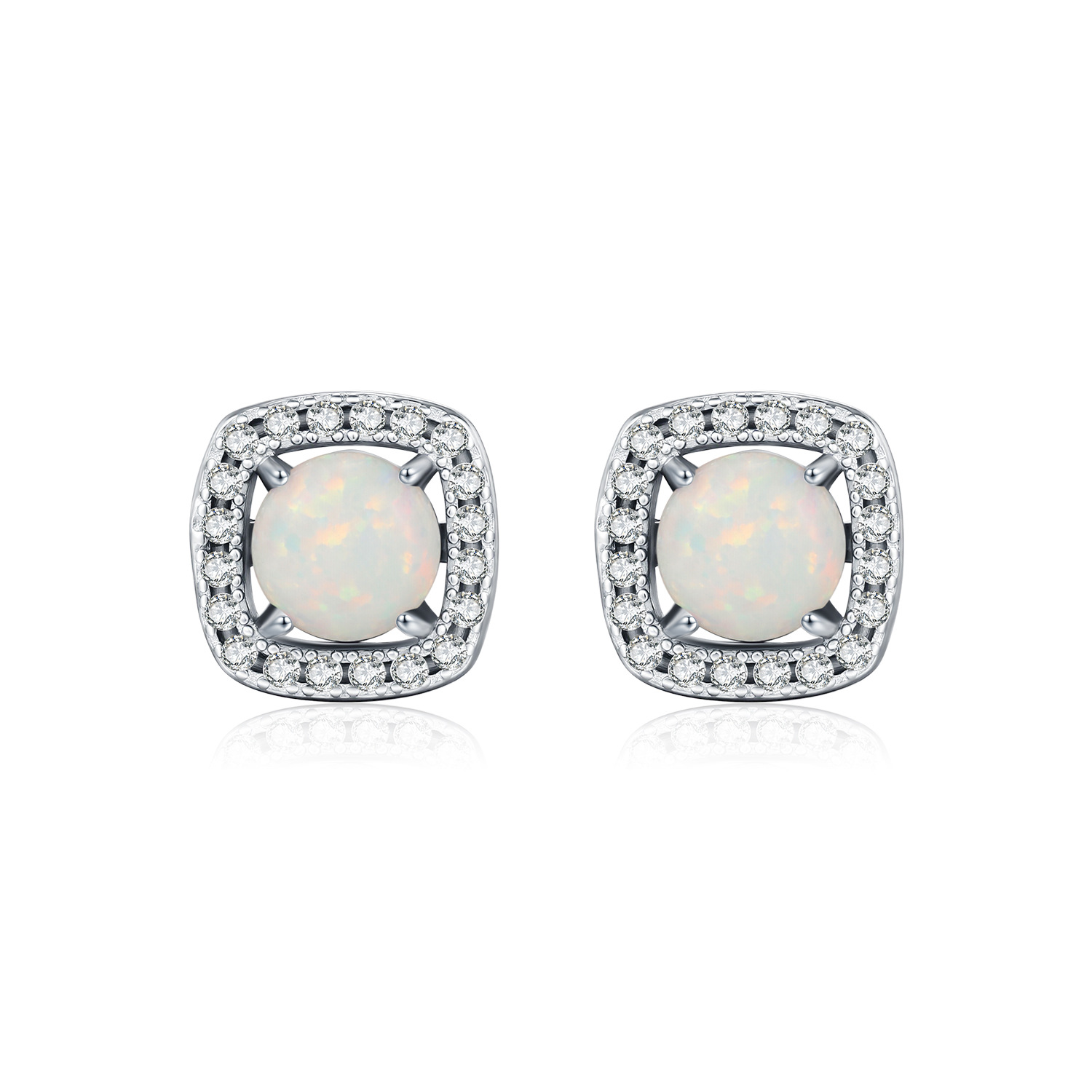 Expand your vintage-inspired collection with our Wholesale 925 Sterling Silver Vintage Cushion Opal Studs. Unlike standard round halo studs, this SKU features a trendy "Cushion Halo" silhouette (a round stone in a soft square frame), which offers a higher perceived value and a unique visual identity. The "Created Opal" center stone provides the desirable play-of-color of natural opal but with the durability required for everyday wear. These studs are the perfect upsell match for our Vintage Cushion Opal Ring, allowing retailers to offer a complete jewelry set.