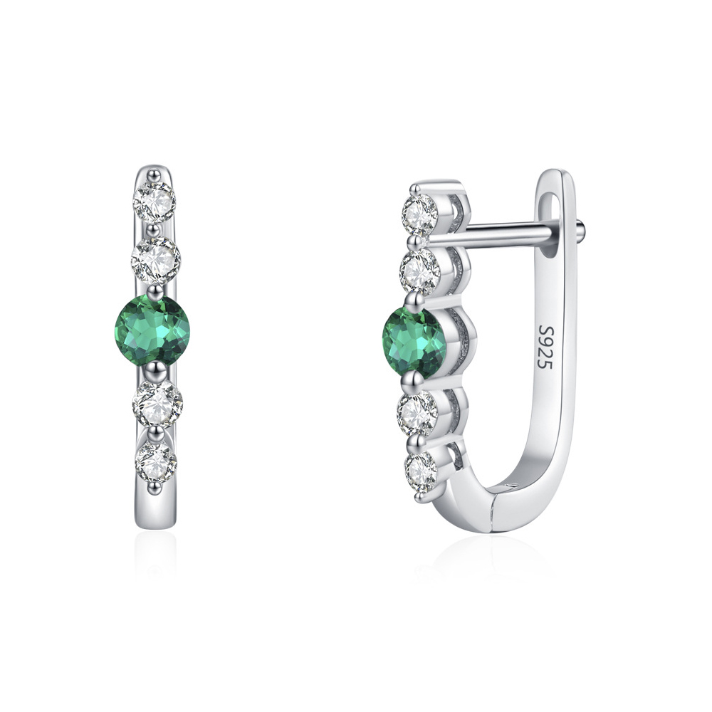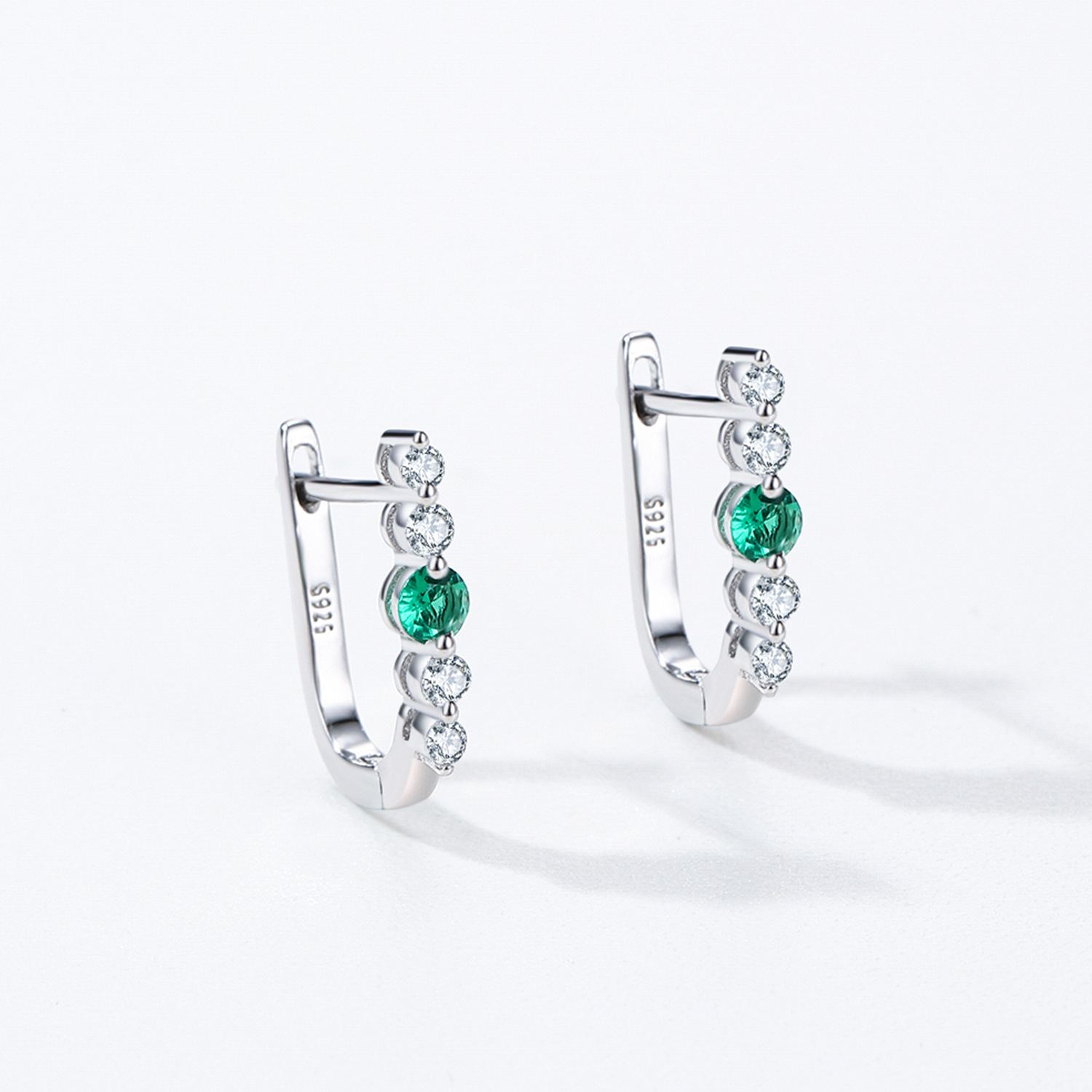 Add a touch of timeless glamour with these 925 sterling silver U-shaped earrings, featuring a brilliant emerald-green centerpiece framed by sparkling cubic zirconia. The vintage-inspired design brings sophistication and charm to any outfit, perfect for both daily wear and formal occasions. Crafted for comfort and lasting shine, these earrings make an elegant gift for women who love classic gemstone jewelry.