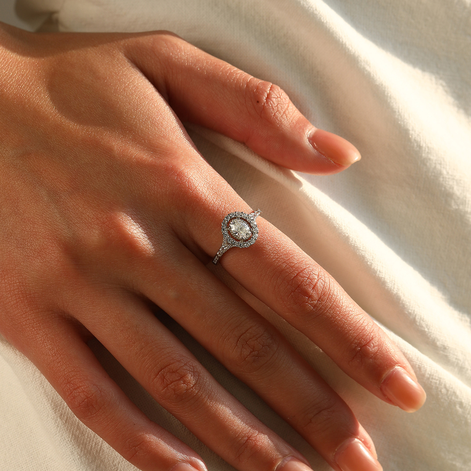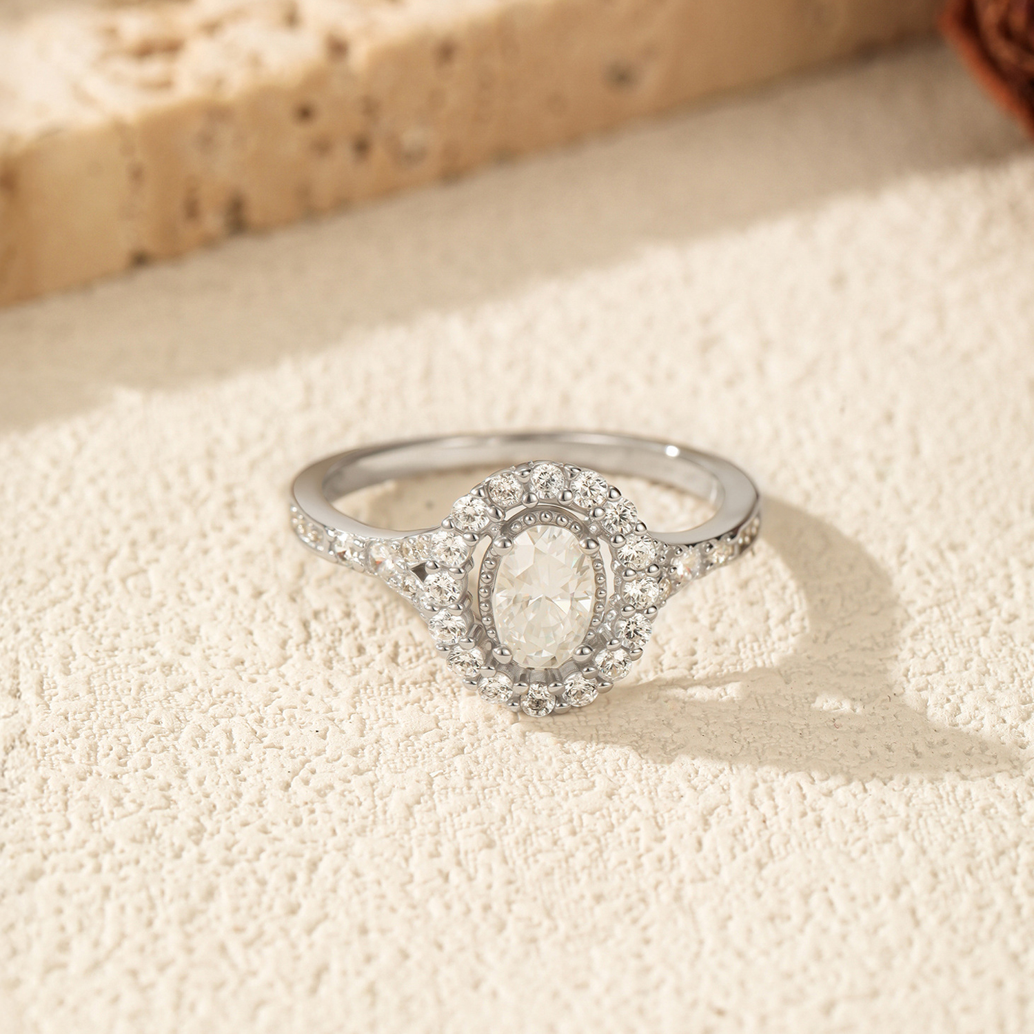 925 Sterling Silver Vintage Luxury 0.5 Ct Oval Moissanite Ring 110200082
