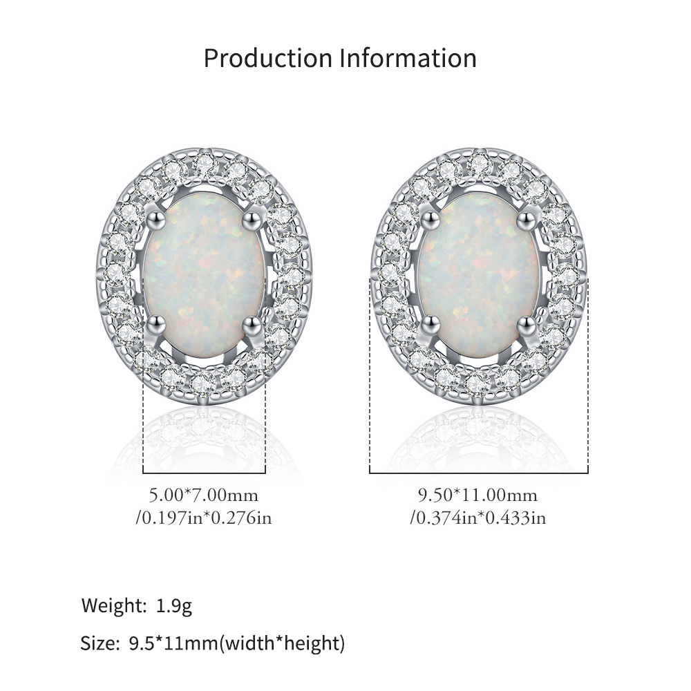925 Sterling Silver Vintage Oval Created Opal Halo Stud Earrings 40700046