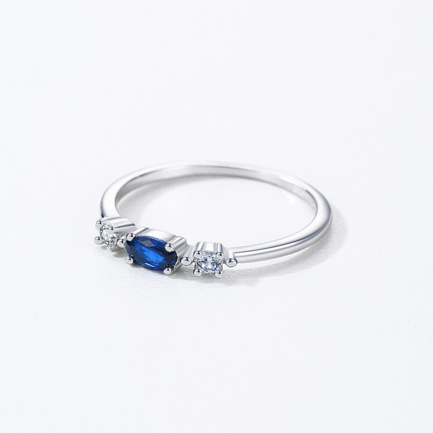 This exquisite 925 sterling silver ring features a rich, deep-blue sapphire-like cubic zirconia at its center, flanked by two sparkling side stones for a timeless three-stone look. The elegant minimalist band enhances the brilliance of each gem, creating a perfect balance of sophistication and shine. Ideal for stacking or wearing solo, this ring adds a hint of vintage charm and modern elegance to any outfit — perfect for daily wear or as a thoughtful gift.