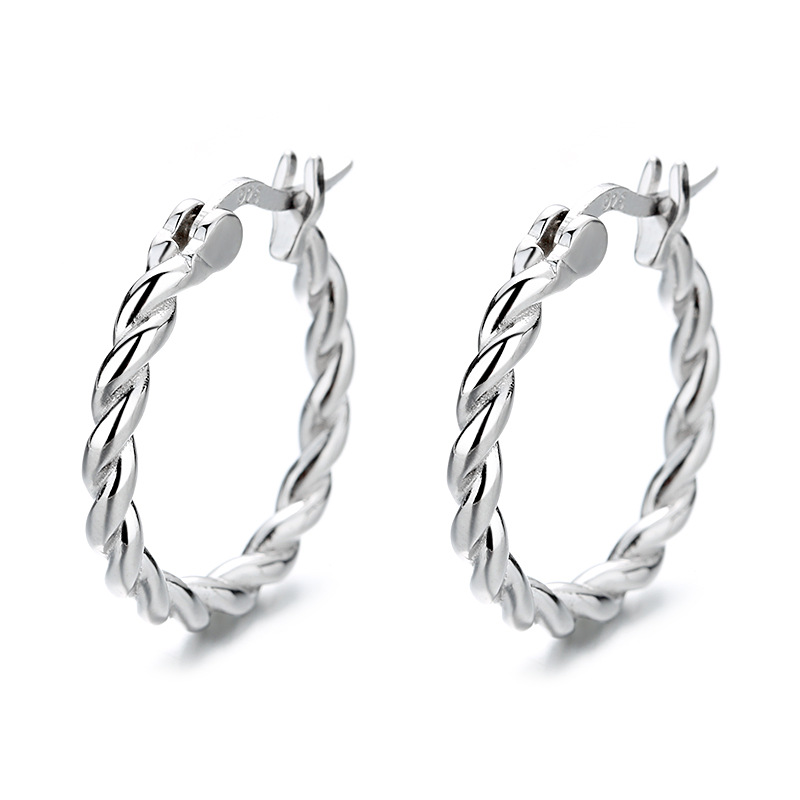 Stock a perennial favorite with our Wholesale 925 Sterling Silver Vintage Twisted Cable Hoop Earrings The "Rope" or "Cable" texture is a classic motif in jewelry design that consistently performs well, appealing to customers seeking "Modern Vintage" or nautical aesthetics. This SKU offers a high-definition twisted finish that feels substantial and luxurious. Manufactured from solid S925 sterling silver, these hoops are a reliable, high-margin staple that complements other textured or plain items in your inventory.