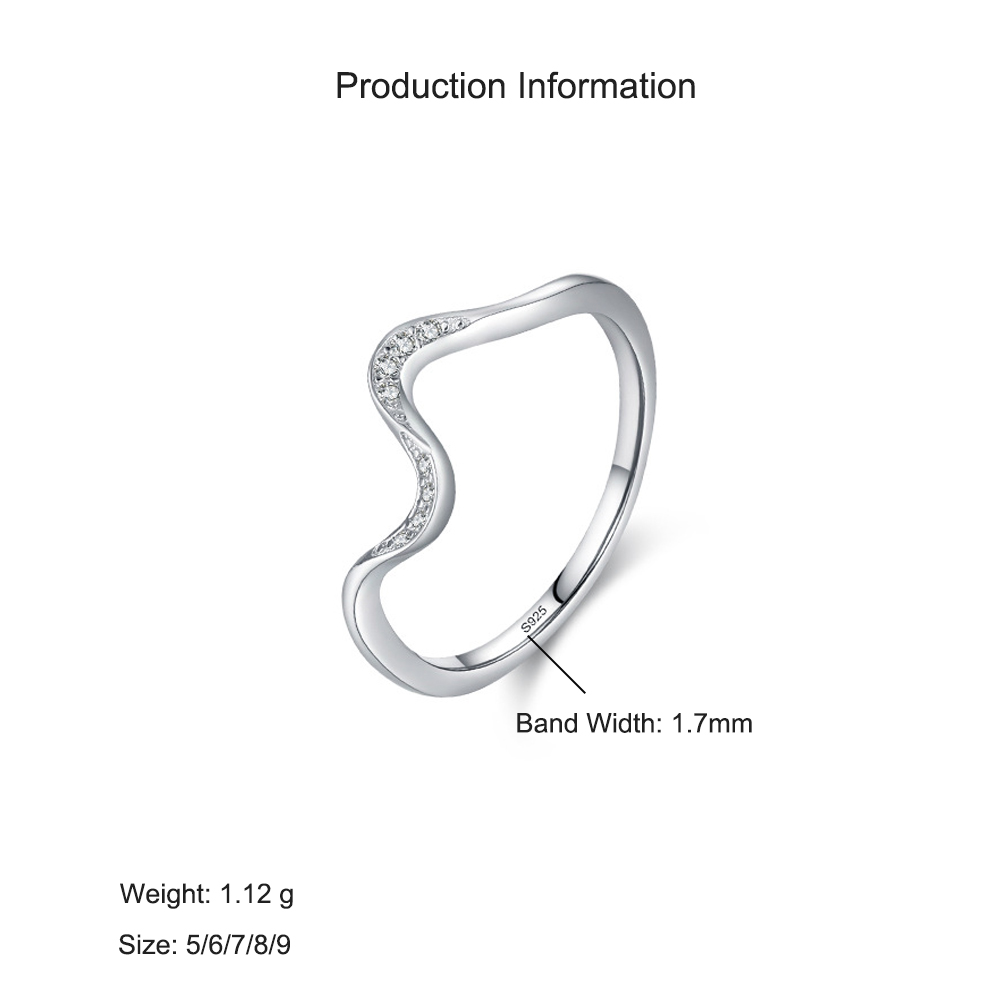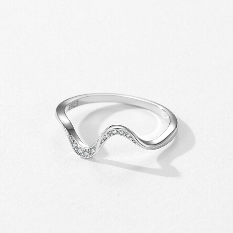 925 Sterling Silver Wave CZ Minimalist Band Ring 70100557
