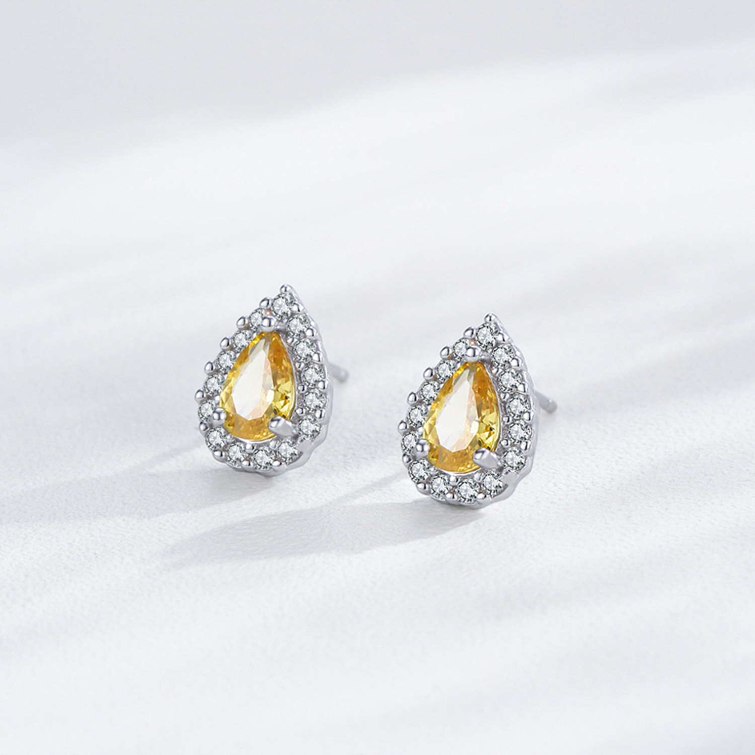 925 Sterling Silver Yellow Teardrop Zircon Stud Earring 40200722