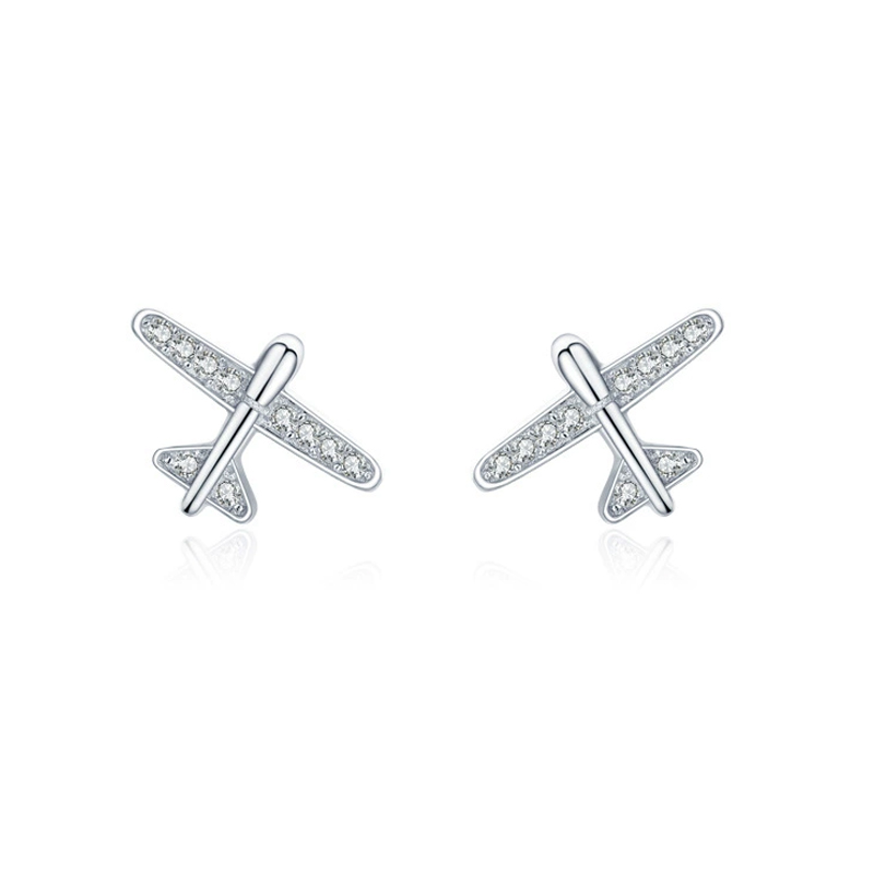 Take your style to new heights with these 925 sterling silver airplane earrings. Designed with clean lines and adorned with shimmering zircon accents, they capture the adventurous spirit of travel and freedom. Crafted from high-quality sterling silver, these earrings are lightweight, hypoallergenic, and perfect for daily wear or as a gift for travel lovers and dreamers. A chic and modern accessory for any outfit.