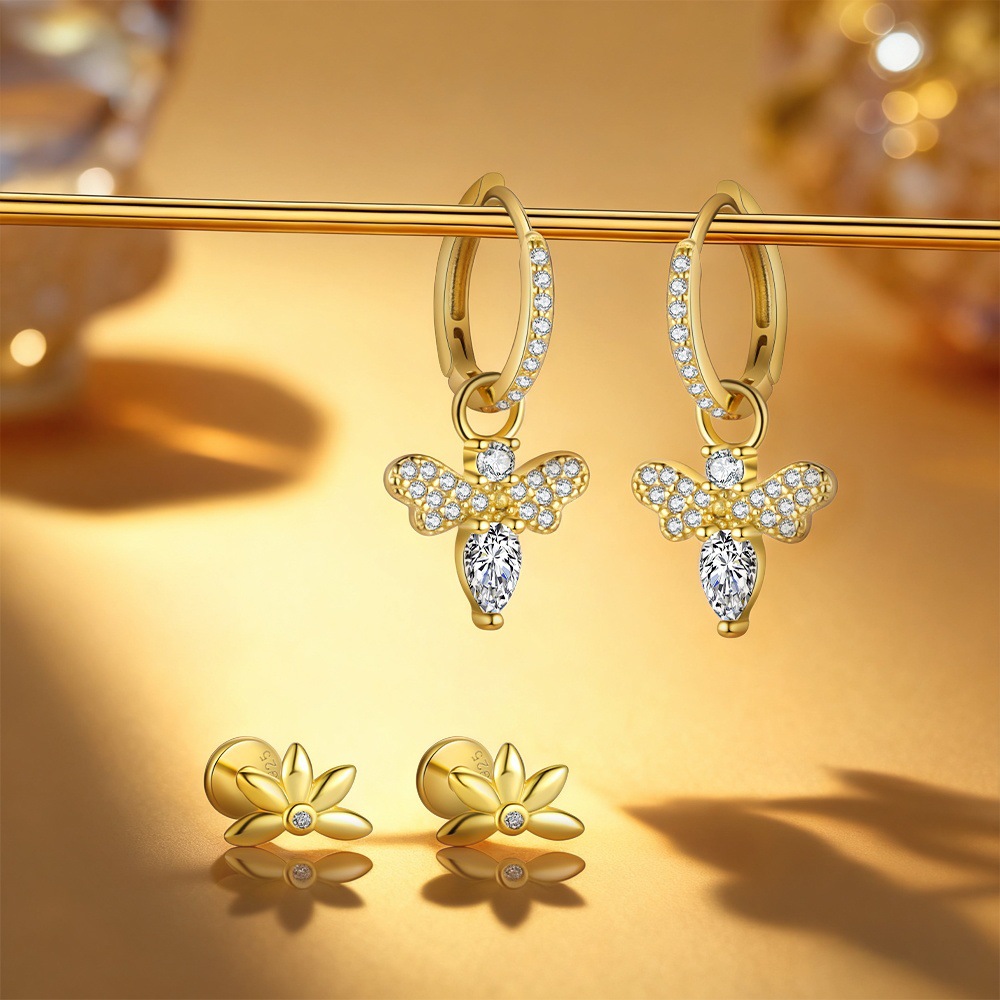 Enchant your customers with the intricate details of our Wholesale 925 Sterling Silver Crystal Bee & Leaf Motif Stud Pack. "Nature-inspired" jewelry remains a top seller, and this SKU combines popular elements like "Bees" and "Flowers" into a ready-to-wear stack. The set distinguishes itself with high-quality "Marquise Cut" Zircons, mimicking the look of fine jewelry petals and leaves. The mix of a huggie hoop and flat-back studs makes this versatile for lobe and cartilage piercings, offering high value for retailers.