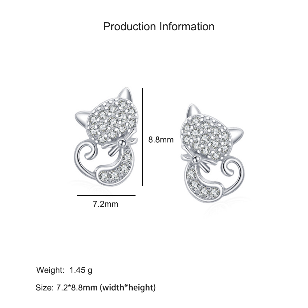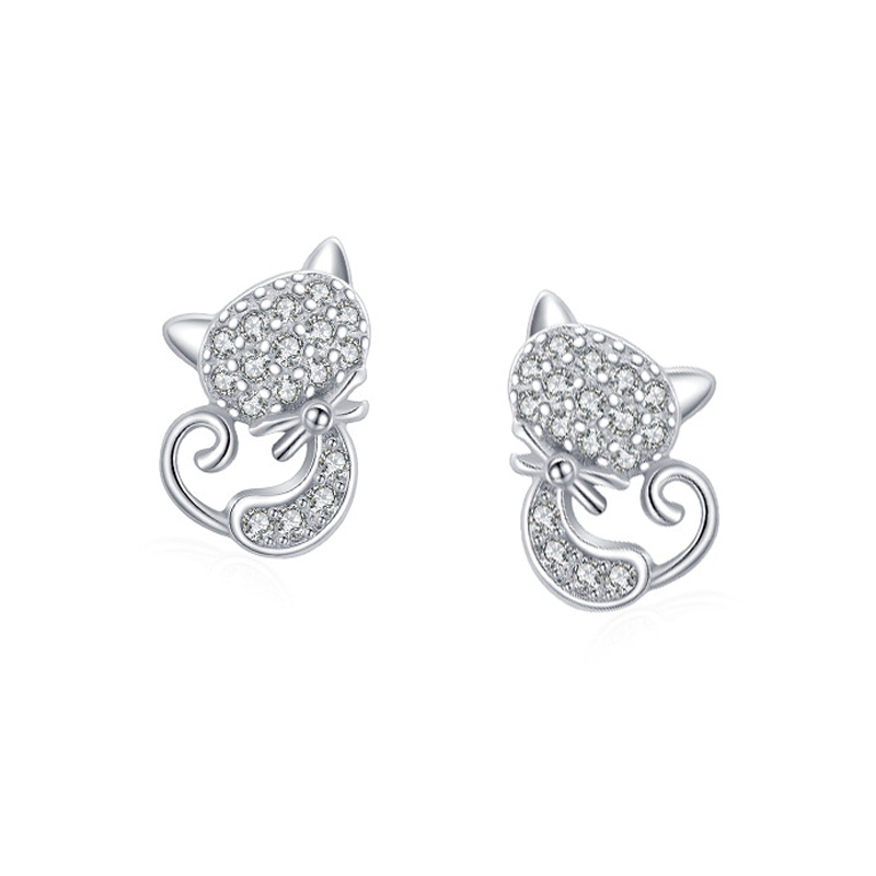 925 Sterling Silver Zircon Cat Stud Earring 40200654