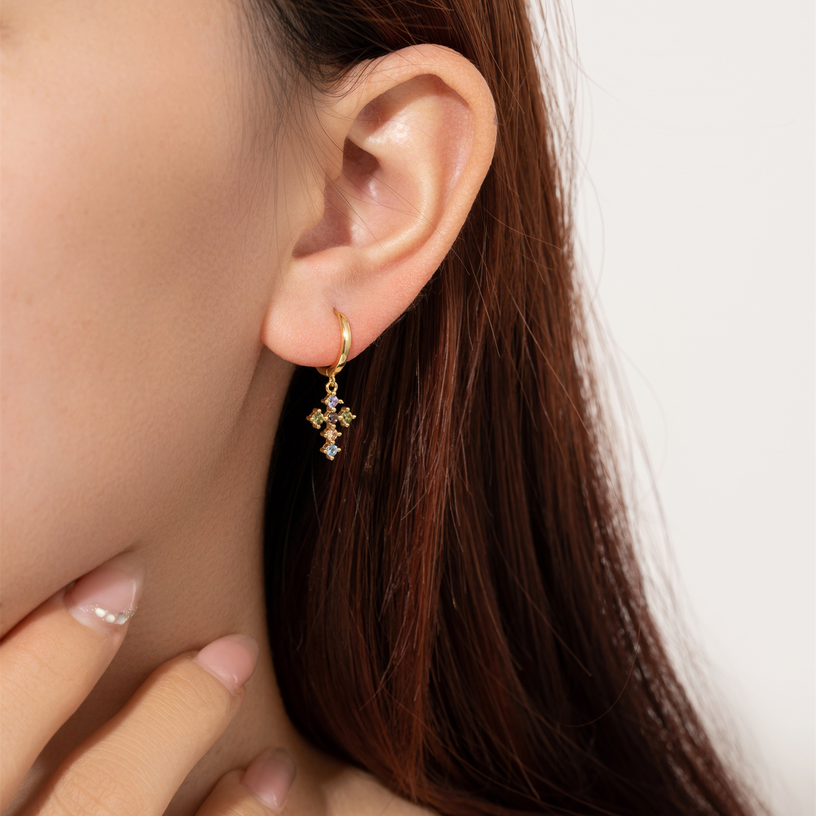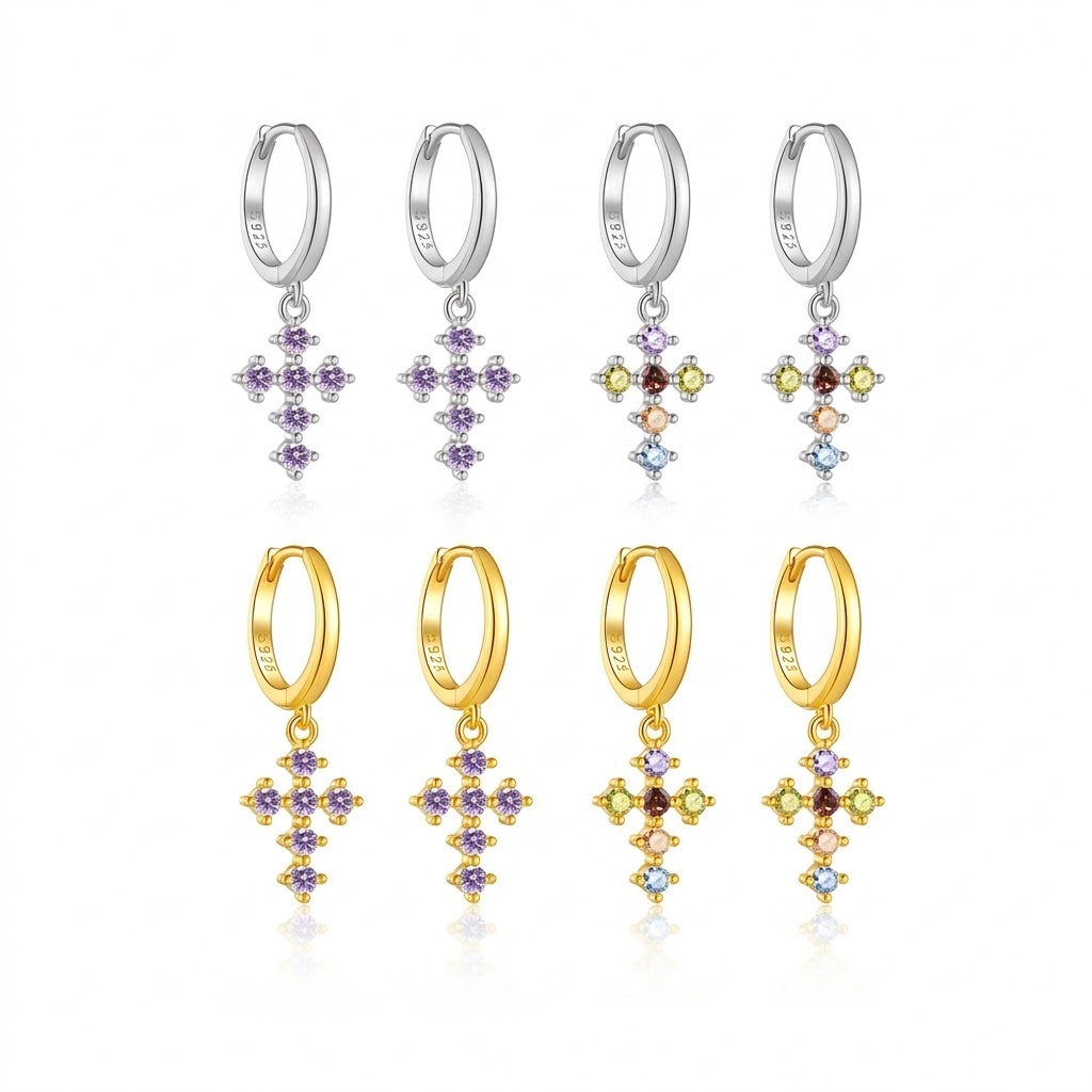 Maximize your core jewelry margins with our Wholesale 925 Sterling Silver Crystal Cross Huggies. The cross motif is a timeless, high-turnover staple in everyday fashion jewelry. This SKU features a secure huggie hoop suspending a crystal-paved cross pendant, available in two highly commercial colorways: soft purple and vibrant multi-color. Crafted from hypoallergenic S925 silver in both gold and silver finishes, these earrings deliver exceptional boutique-level perceived value and comfortable daily wear. A mandatory anchor for your "Everyday Staples" and "Meaningful Gifting" collections.
