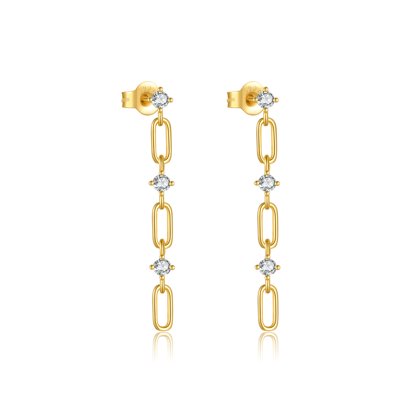 Capitalize on the massive hardware trend with our Wholesale 925 Sterling Silver Crystal Paperclip Drop Earrings. Paperclip links and linear silhouettes are absolute retail powerhouses. This highly commercial SKU beautifully combines both trends, featuring an articulated paperclip chain interspersed with brilliant clear crystal stations. Available in highly requested silver and gold finishes, these hypoallergenic S925 earrings deliver exceptional movement and boutique-level perceived value. A mandatory, high-turnover anchor for your "Modern Edge" and "Everyday Staples" collections.