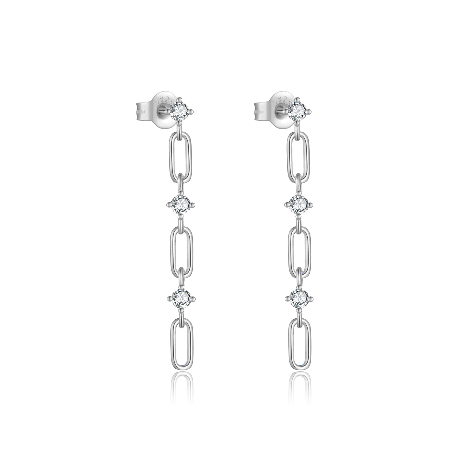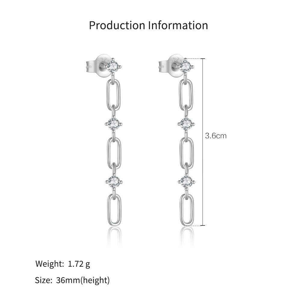 925 Sterling Silver Zircon Paperclip Drop Earrings 40200760
